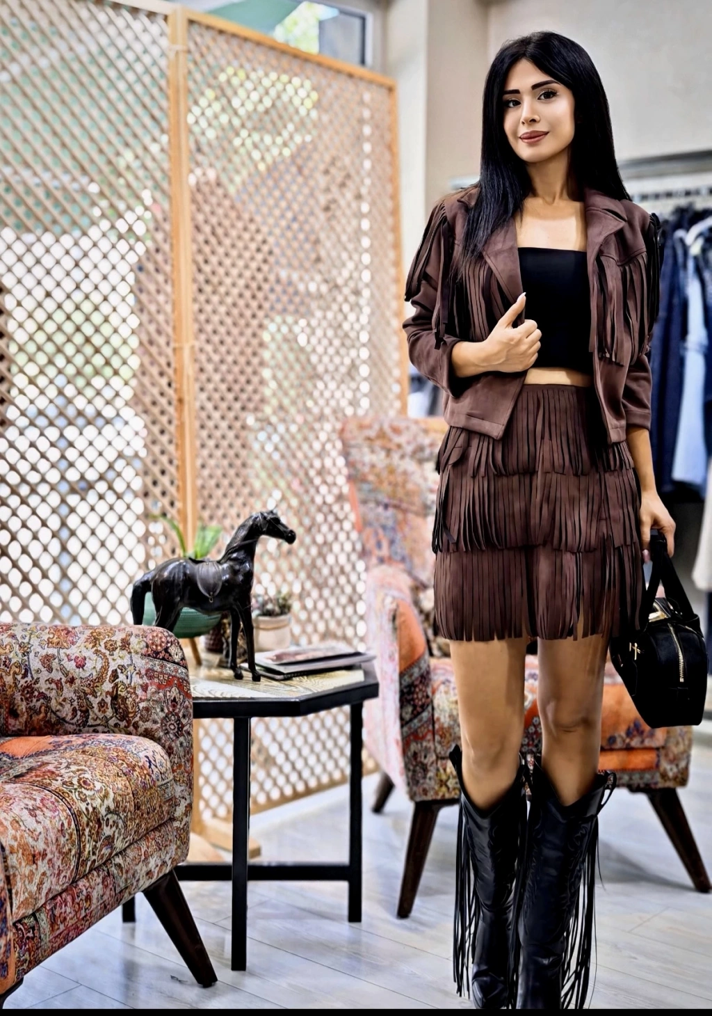 ACI KAHVE PÜSKÜLLÜ BASKISIZ CEKET
