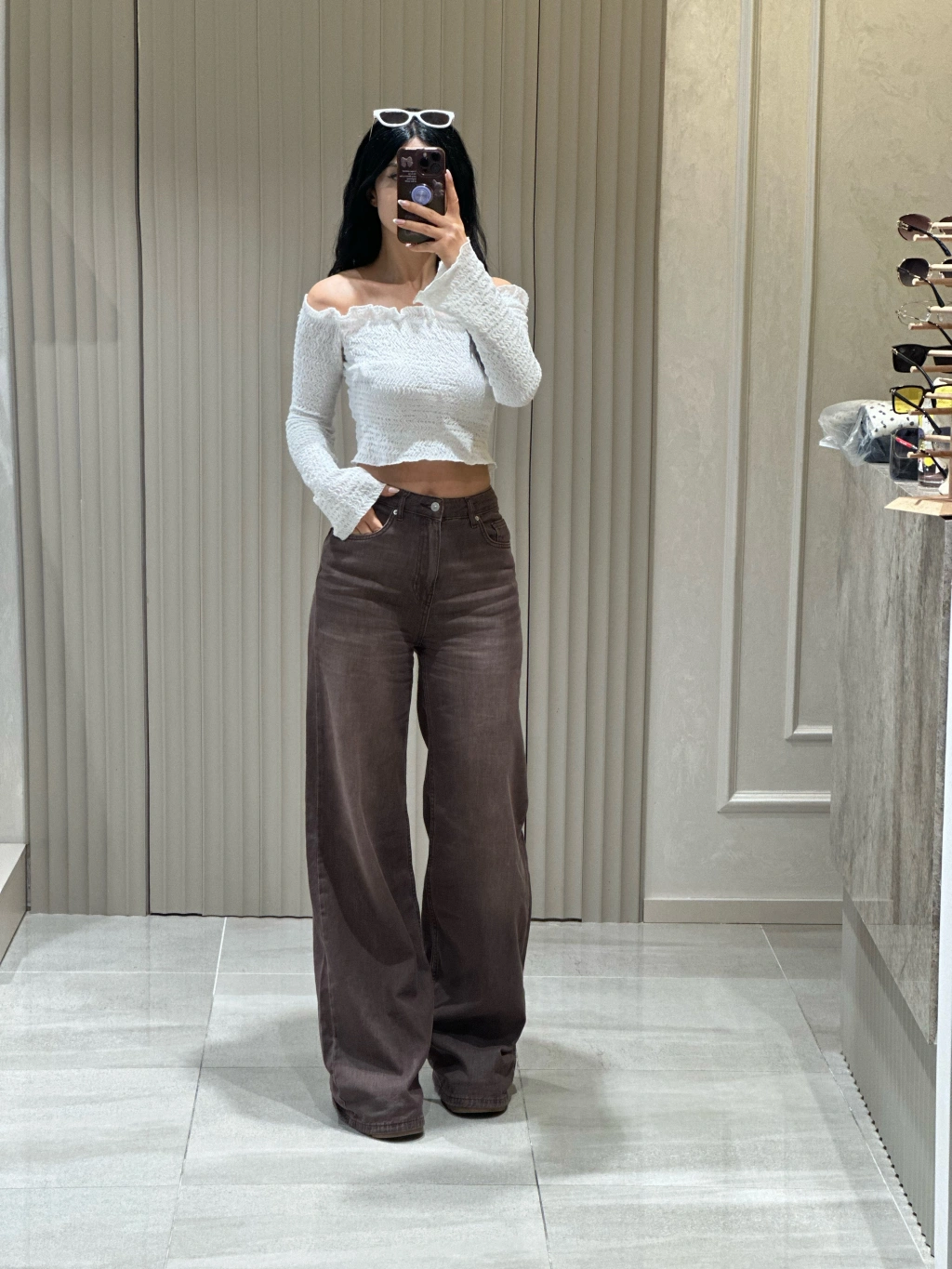 BELİ LASTİKLİ BOL PAÇA DERİ PANTOLON