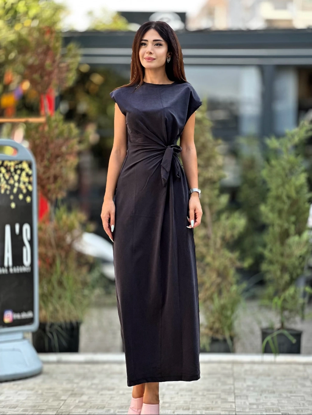 Antrasit Likralı Vatkalı Elbise – 134 cm
