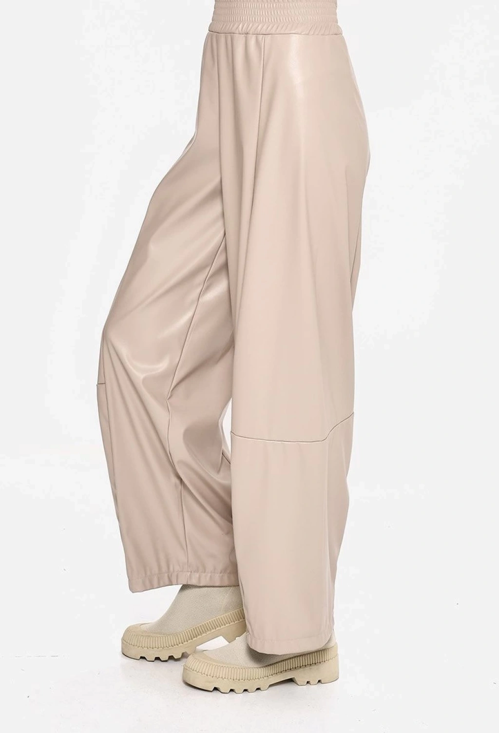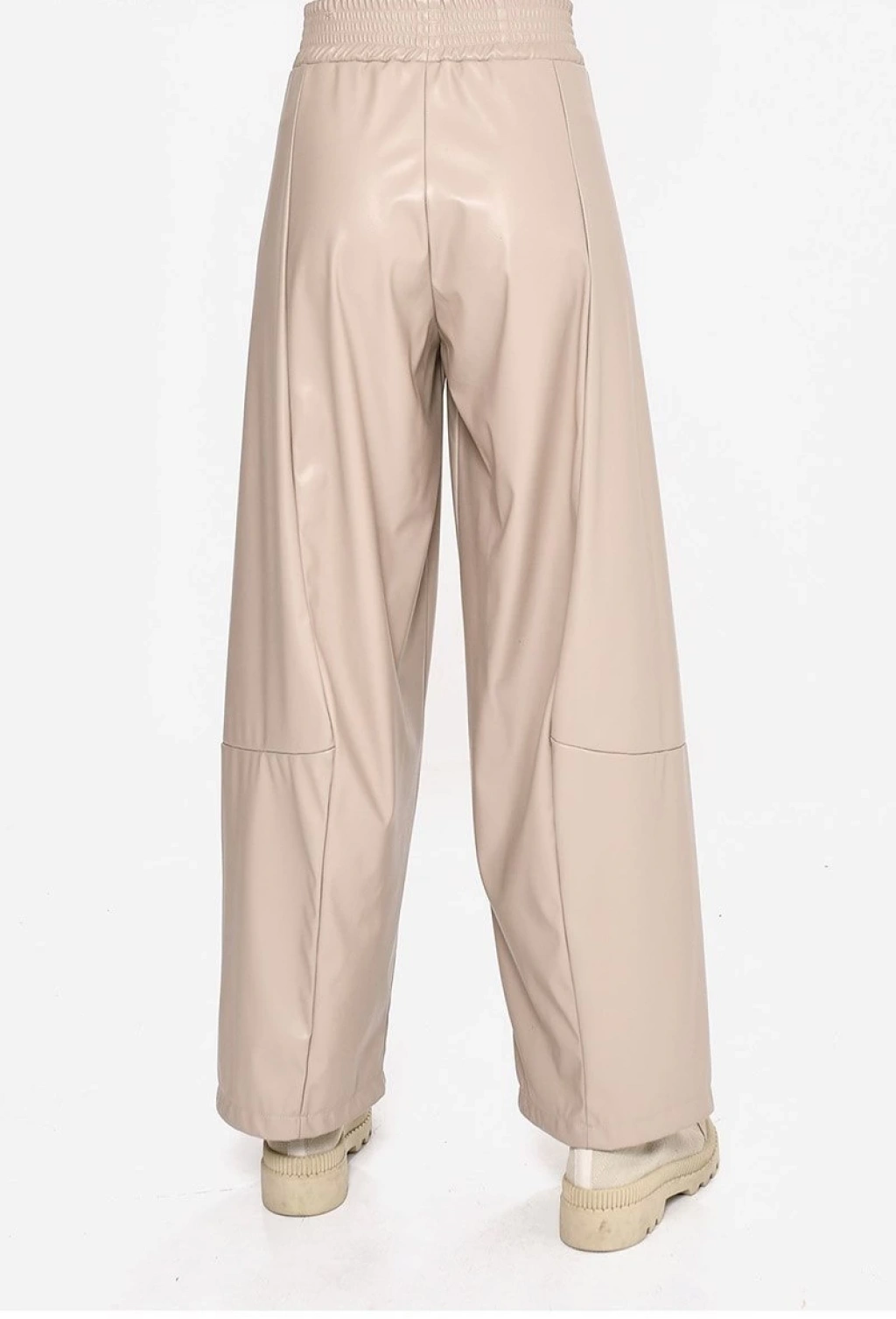 BELİ LASTİKLİ BOL PAÇA DERİ PANTOLON