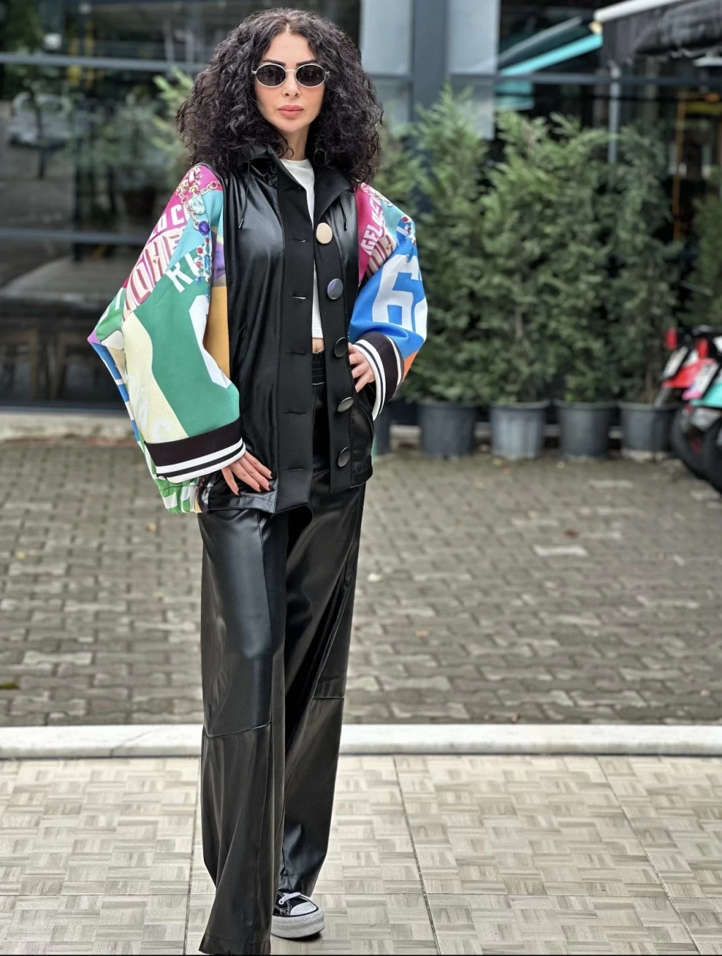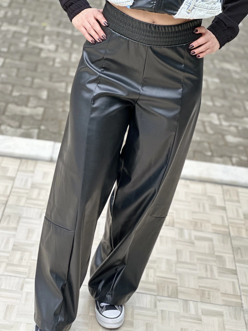 BELİ LASTİKLİ BOL PAÇA DERİ PANTOLON