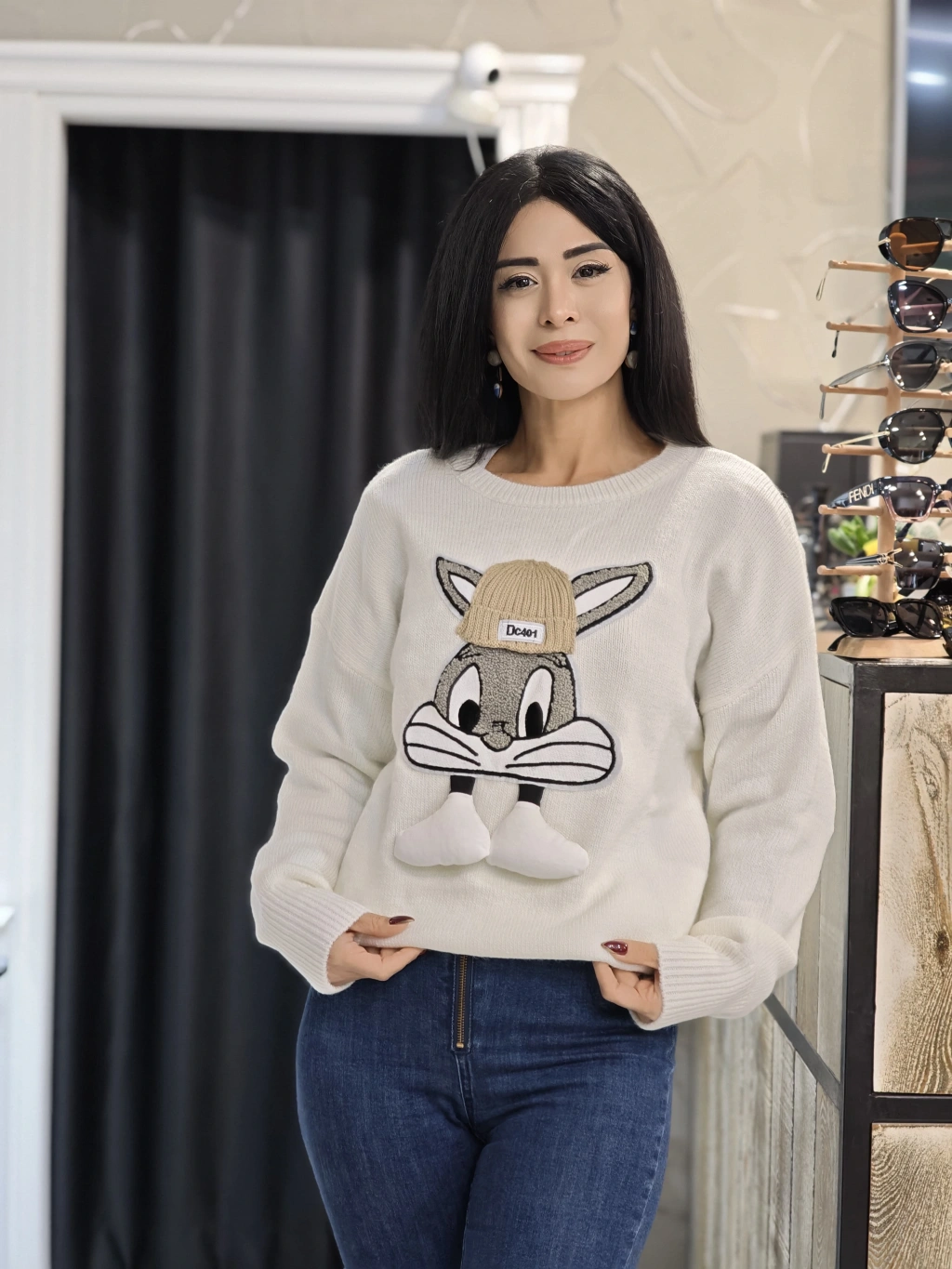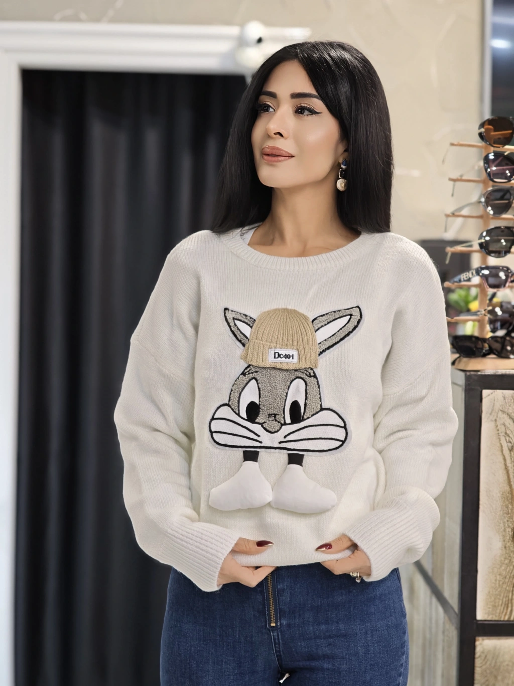 BEYAZ TAVŞANLI TRİKO KAZAK