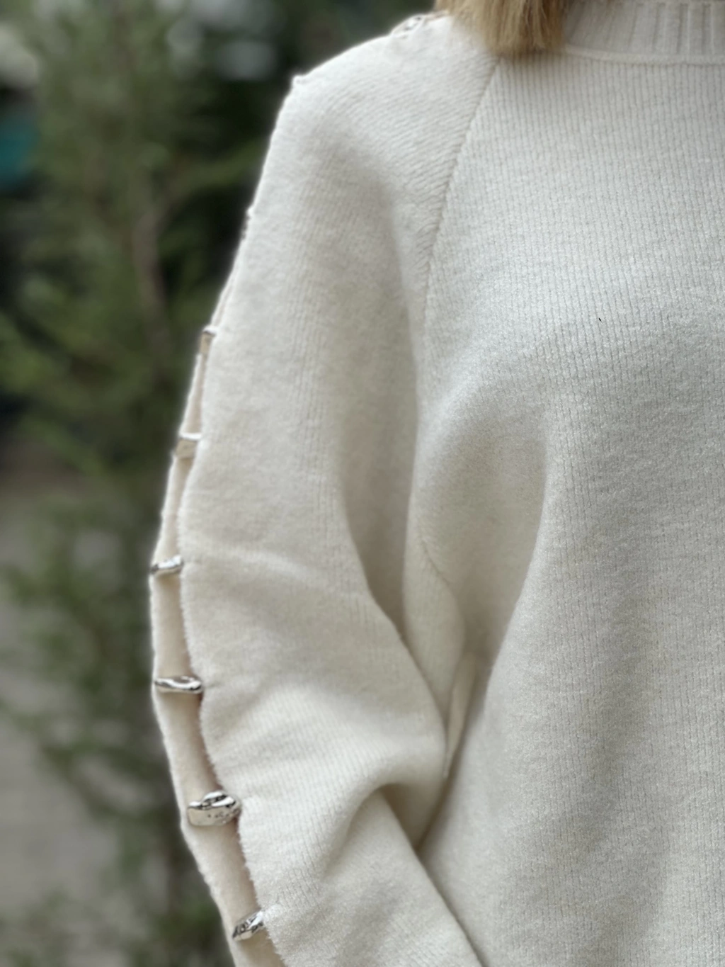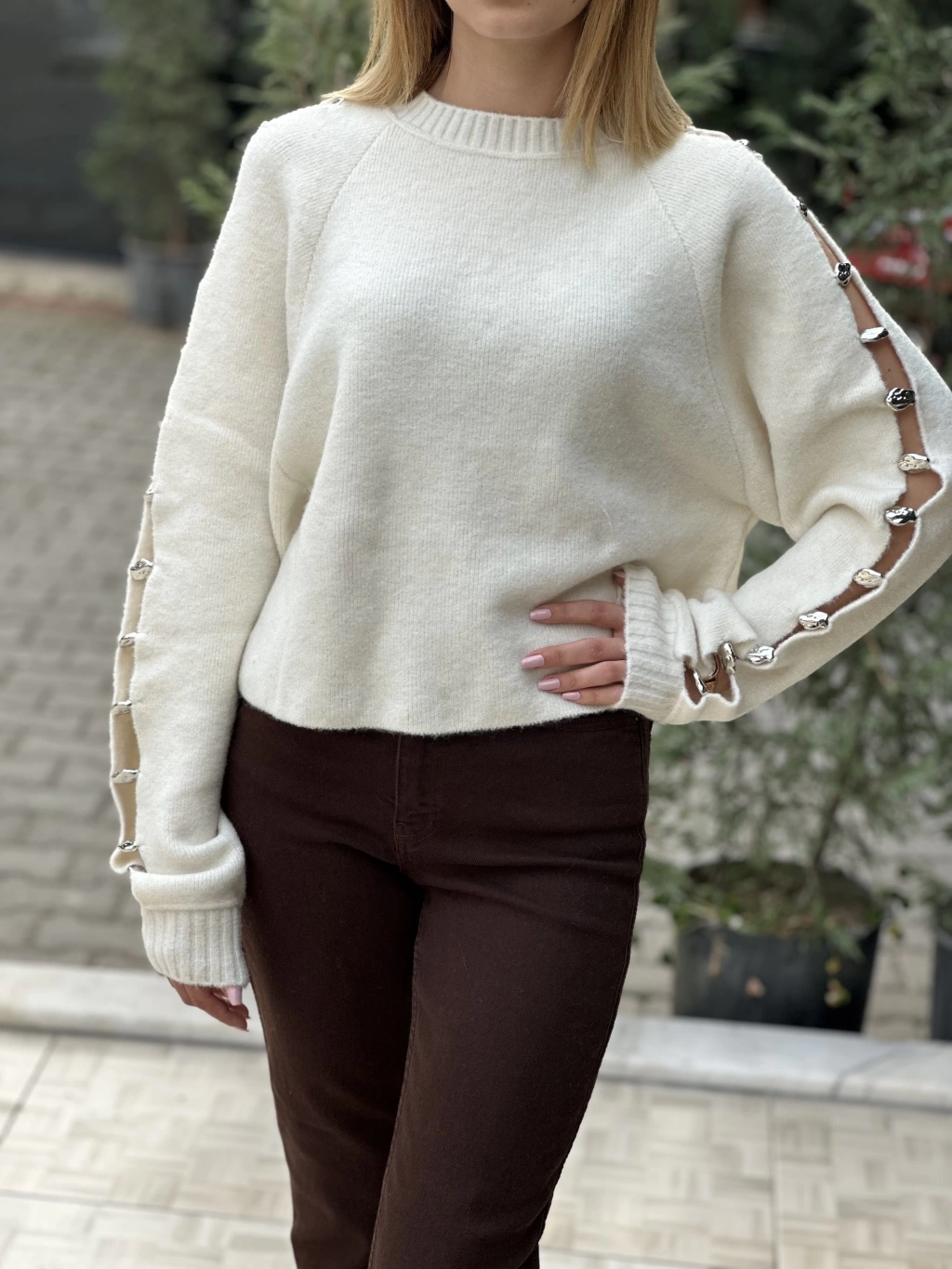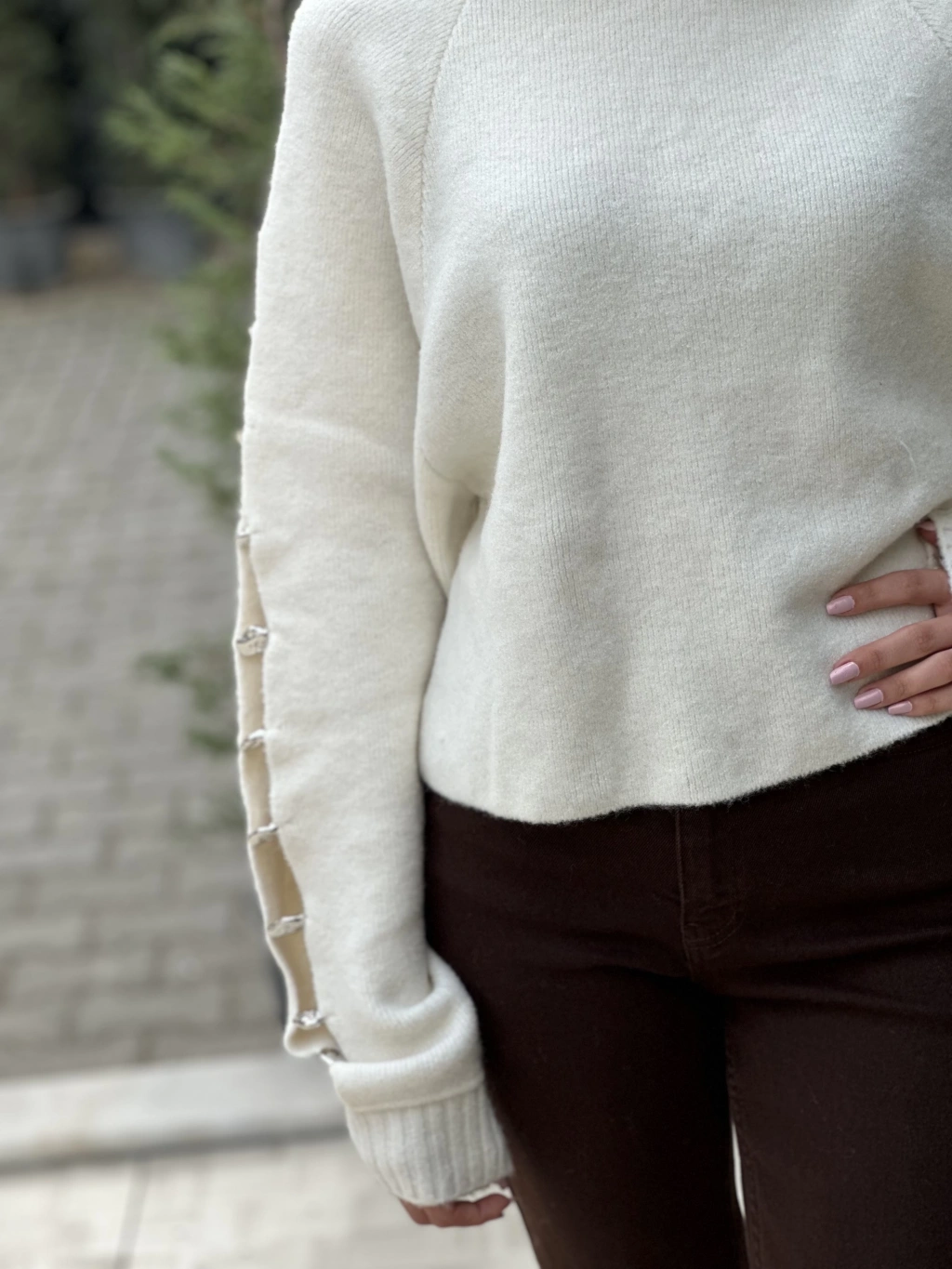İNCİ DETAY YUMOŞ BEYAZ KAZAK