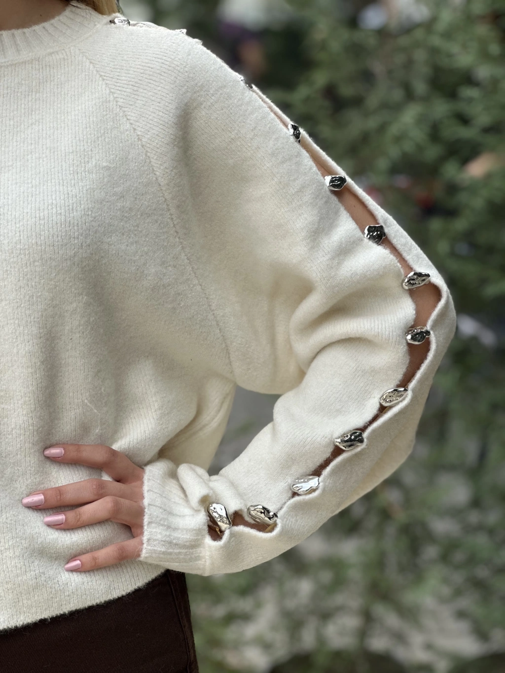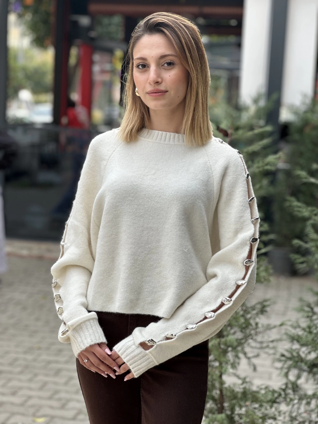 DERİ PÜSKÜL DETAY TRİKO KAZAK