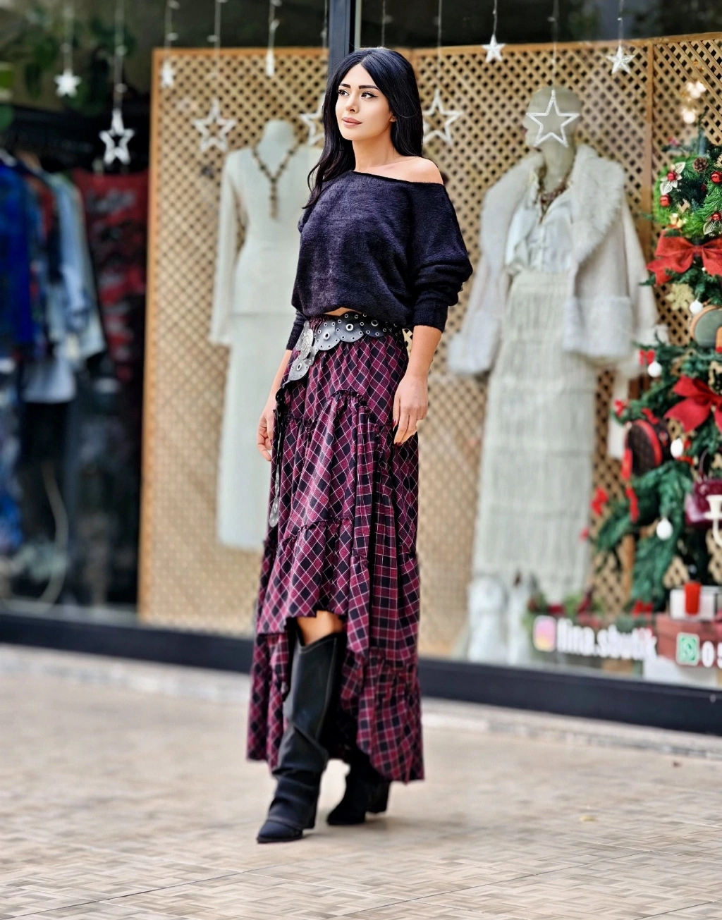 KEMERLİ GRİ DESENLİ PİLELİ ETEK