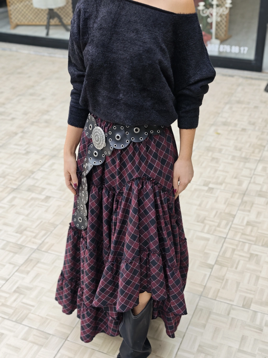 EKOSELİ KIRMIZILI PİLELİ ETEK