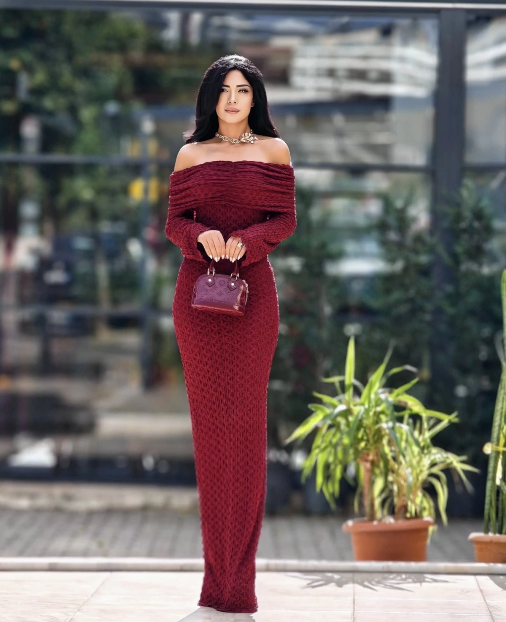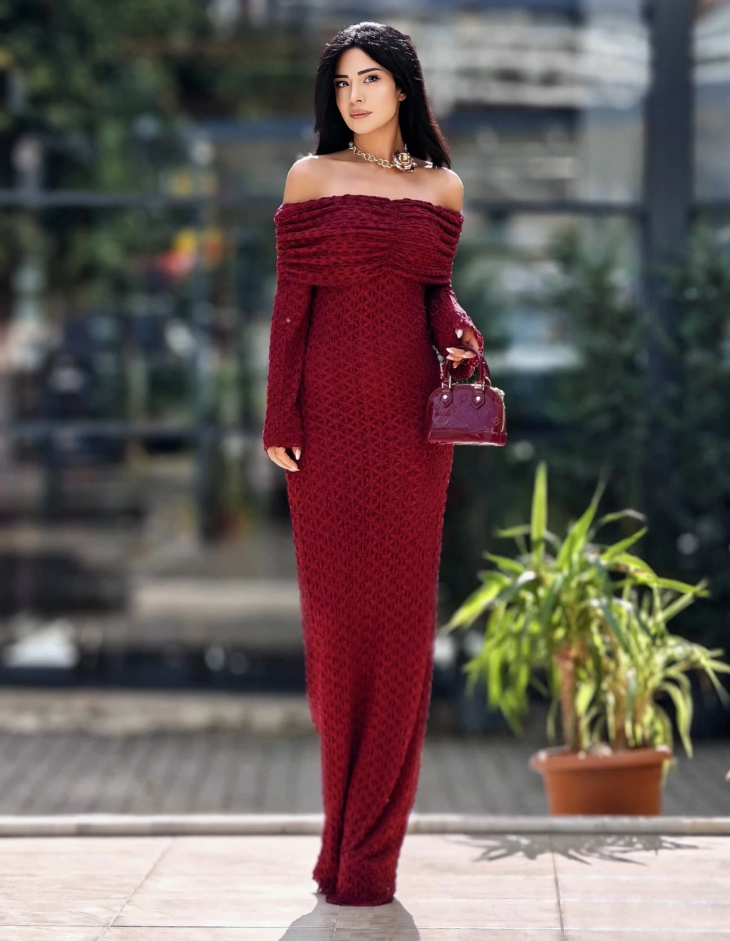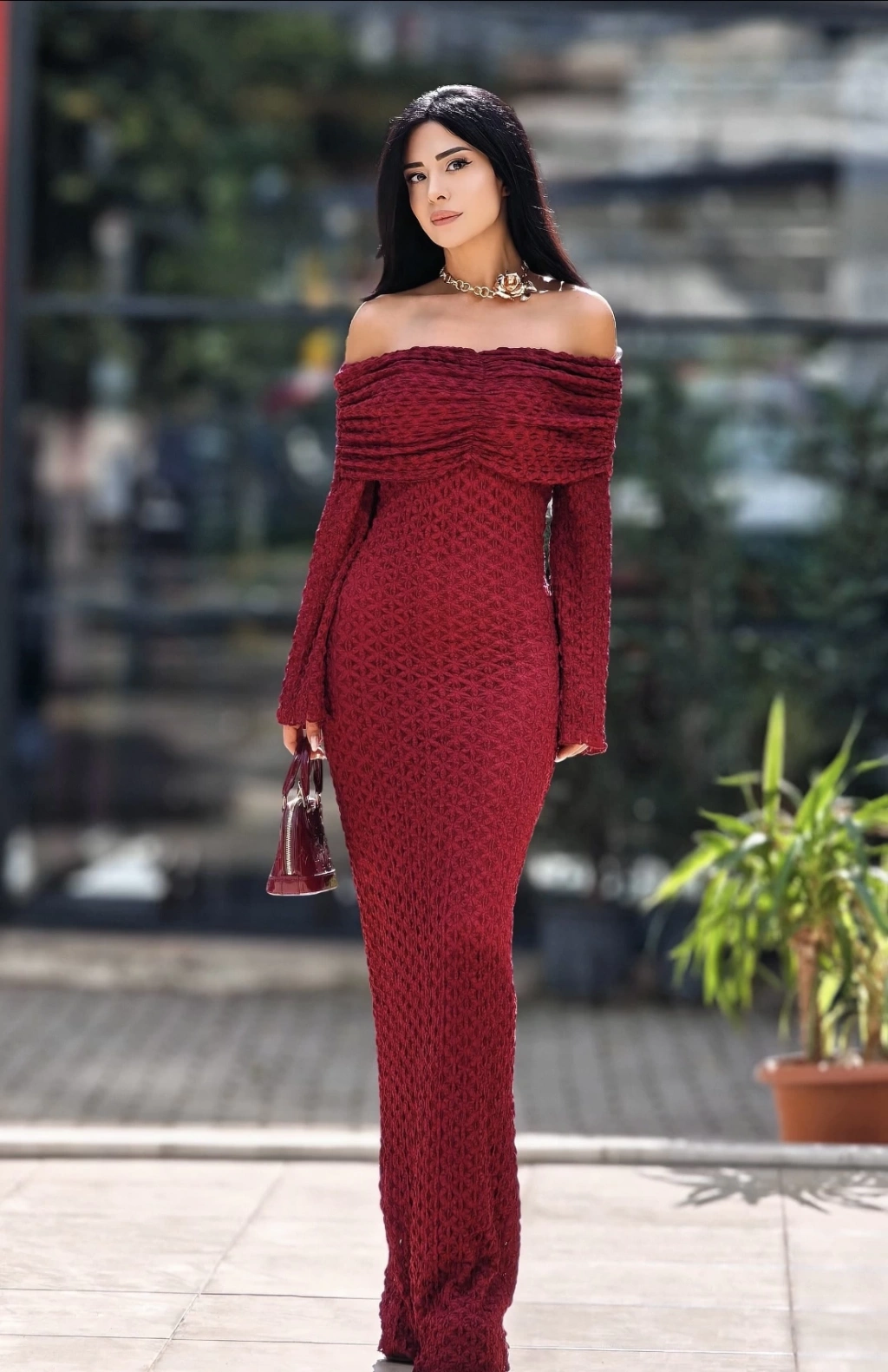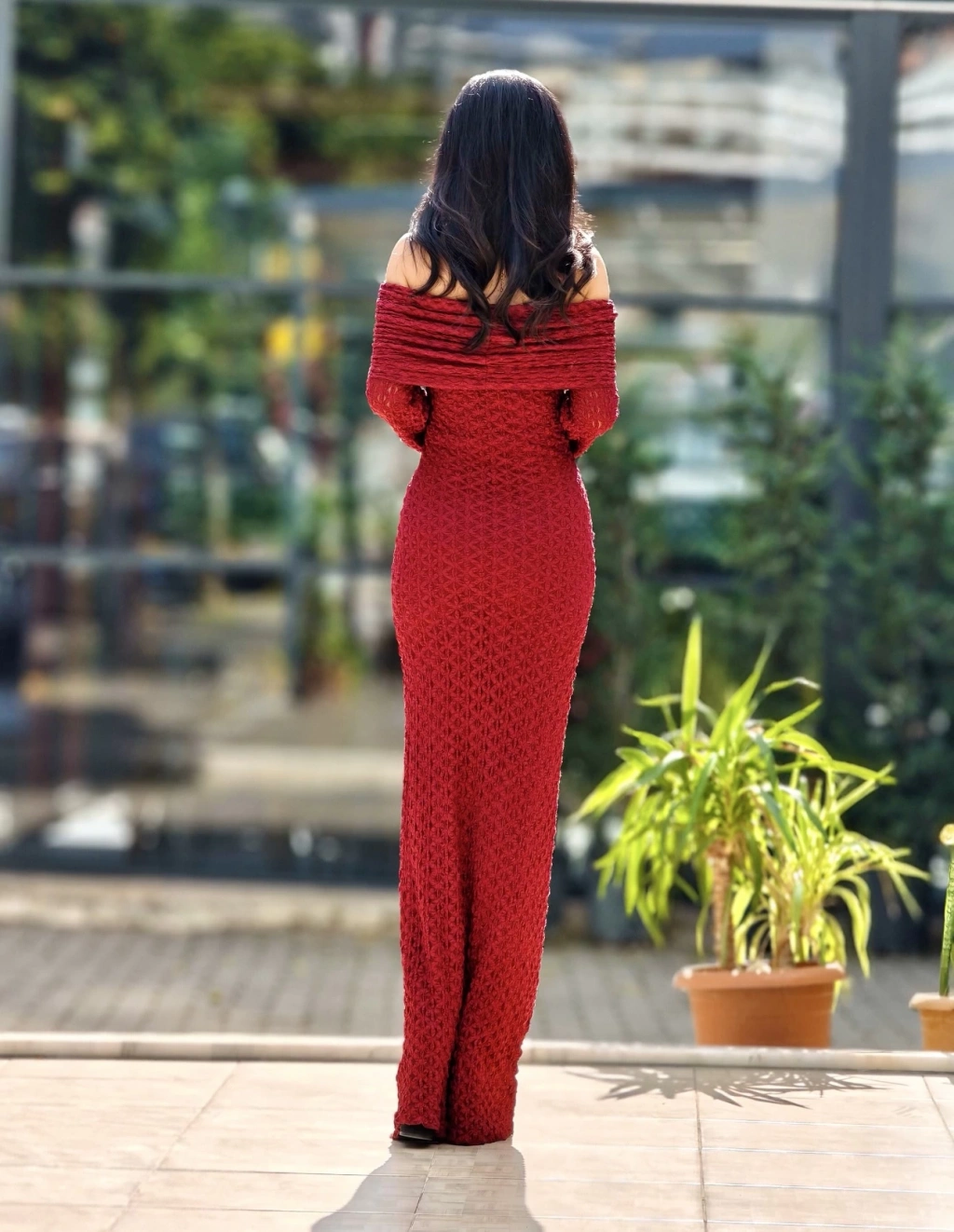 BORDO TÜL DETAY ELBİSE