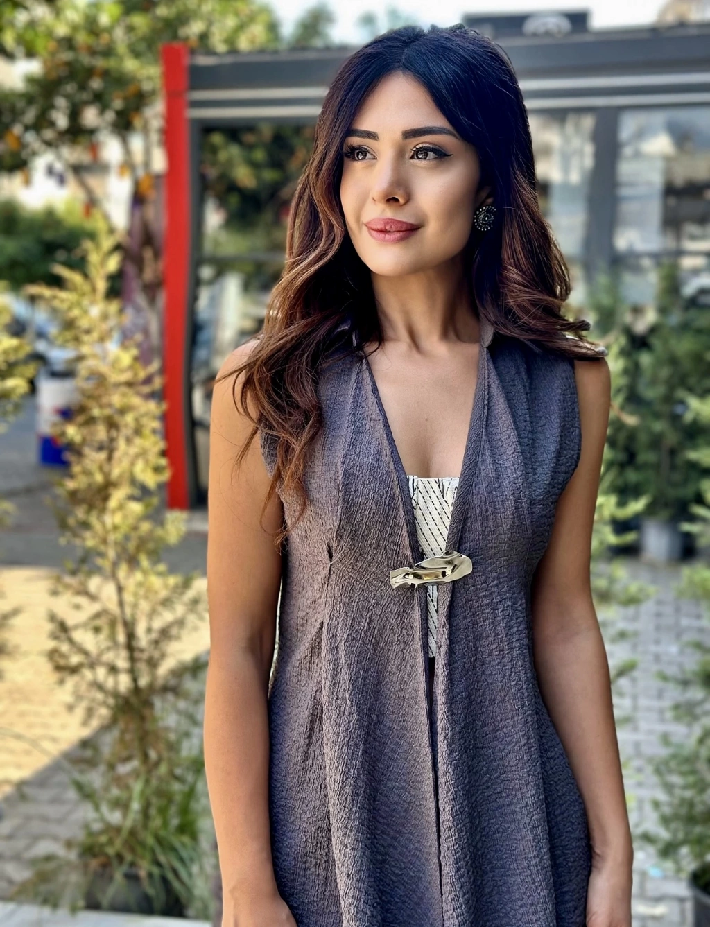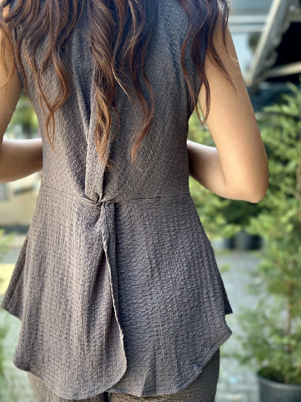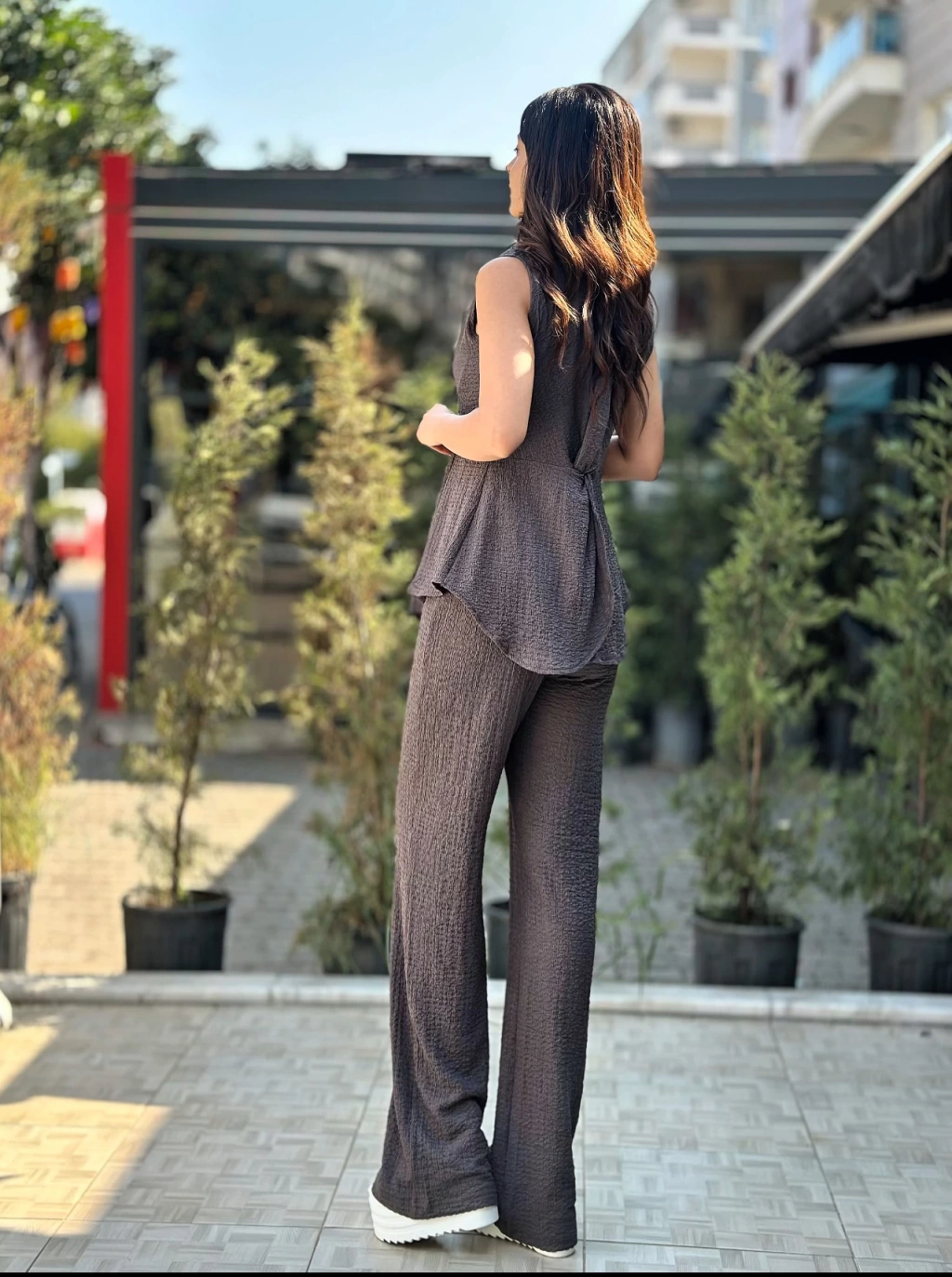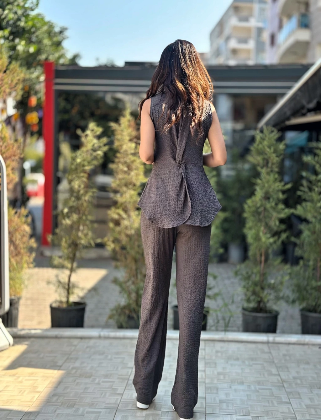 BROŞ DETAYLI UZUN YELEK PANTOLON TAKIM