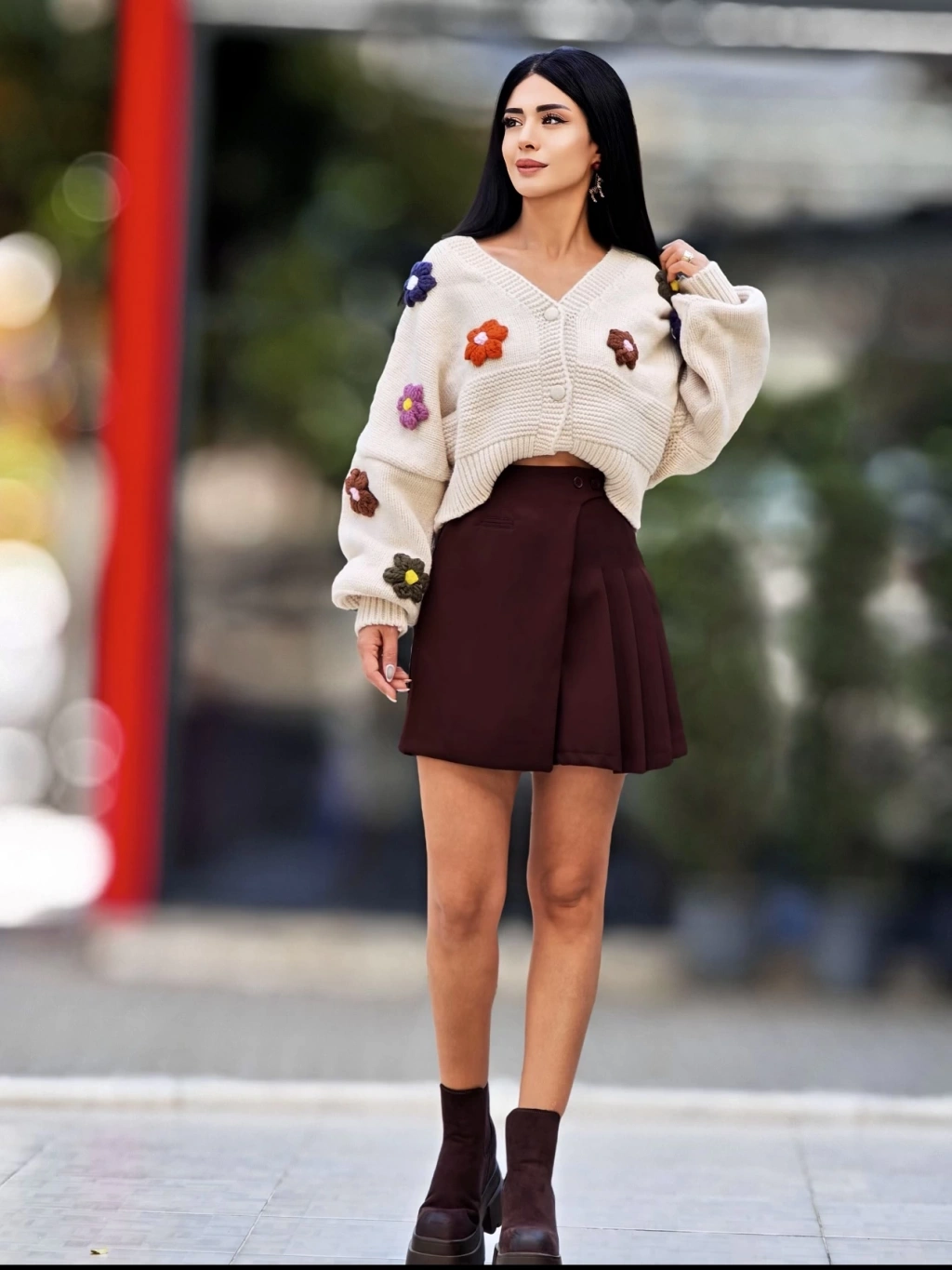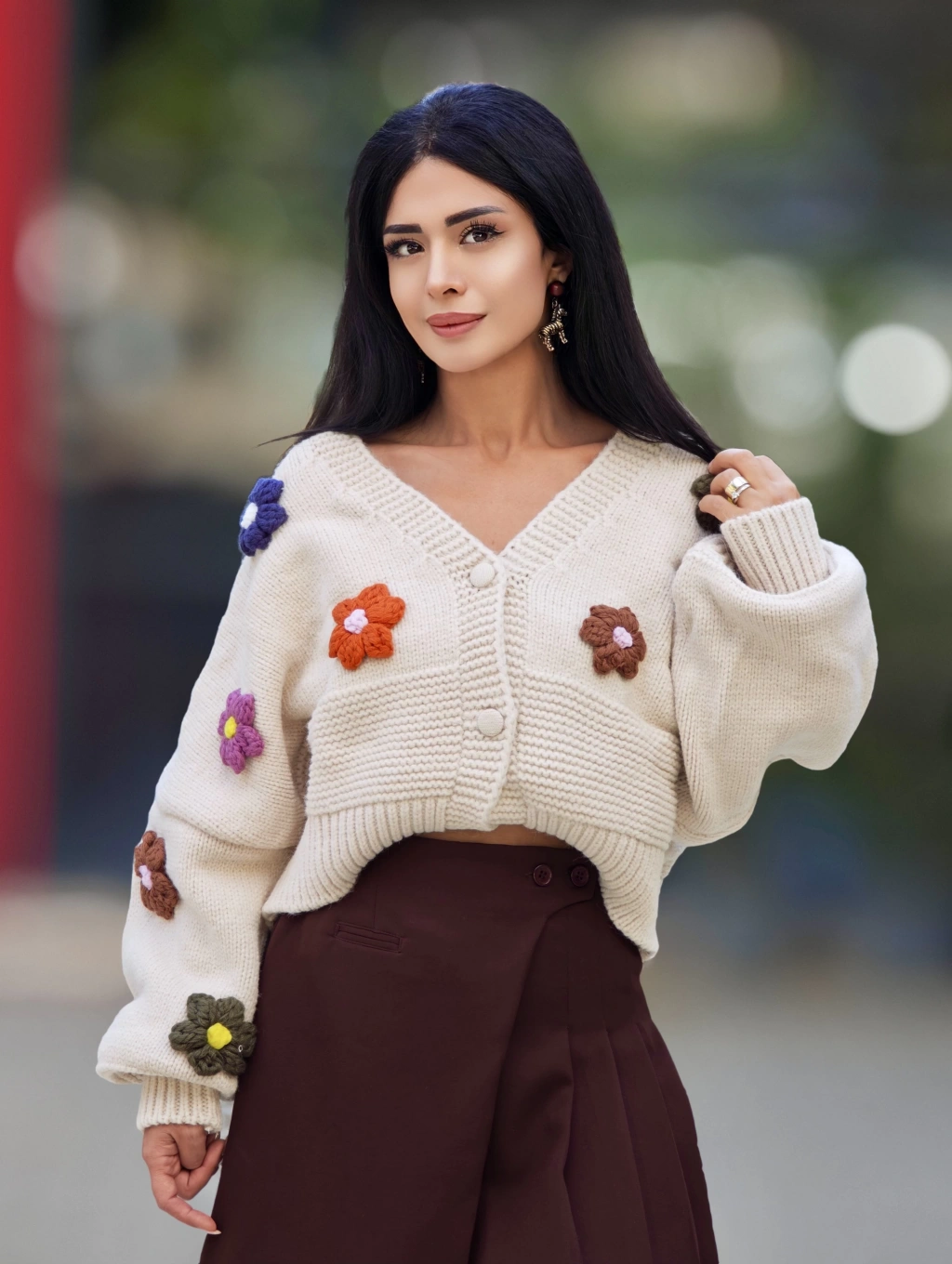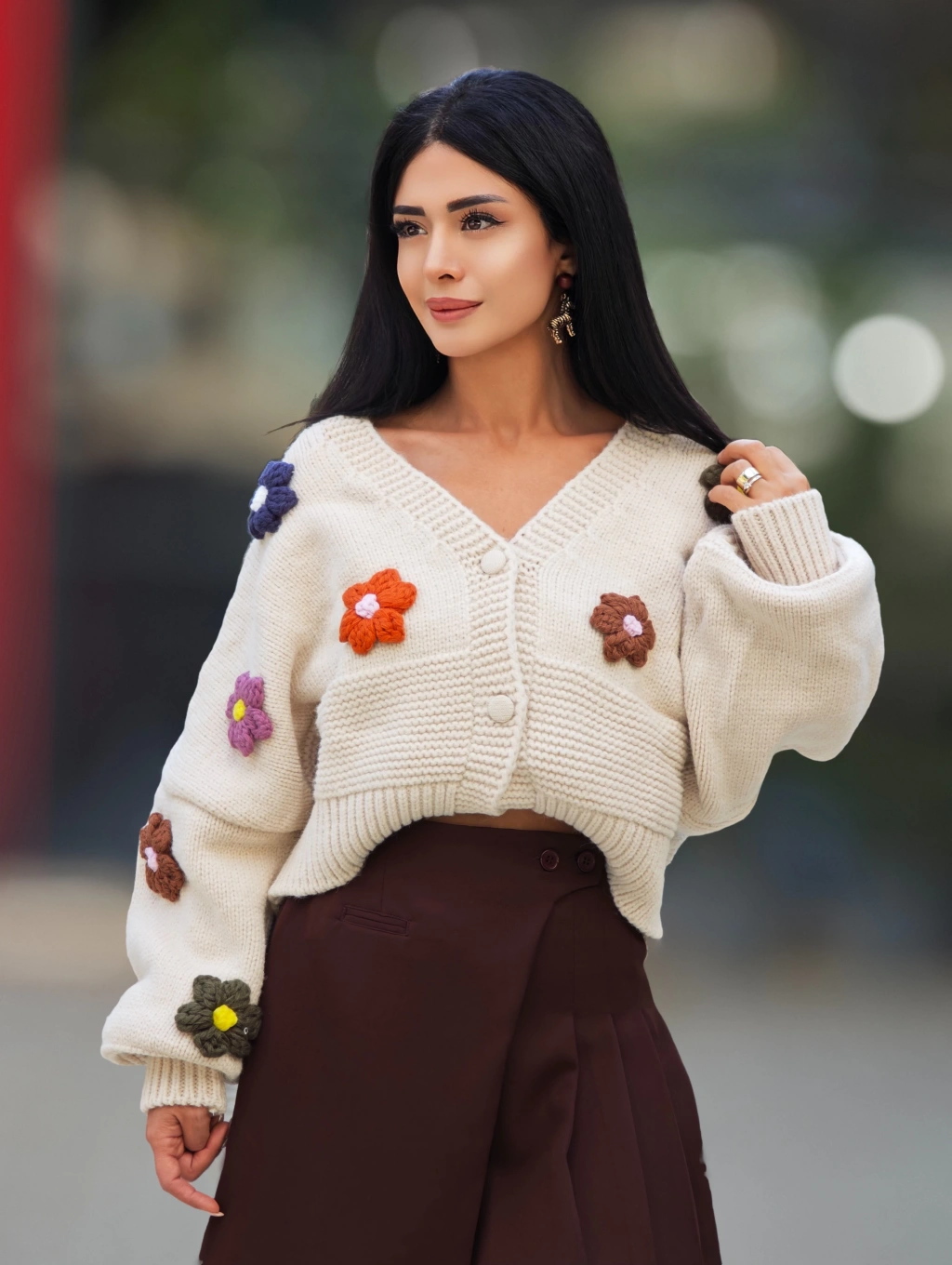 MAVİ ÇİÇEK DETAYLI TRİKO HIRKA