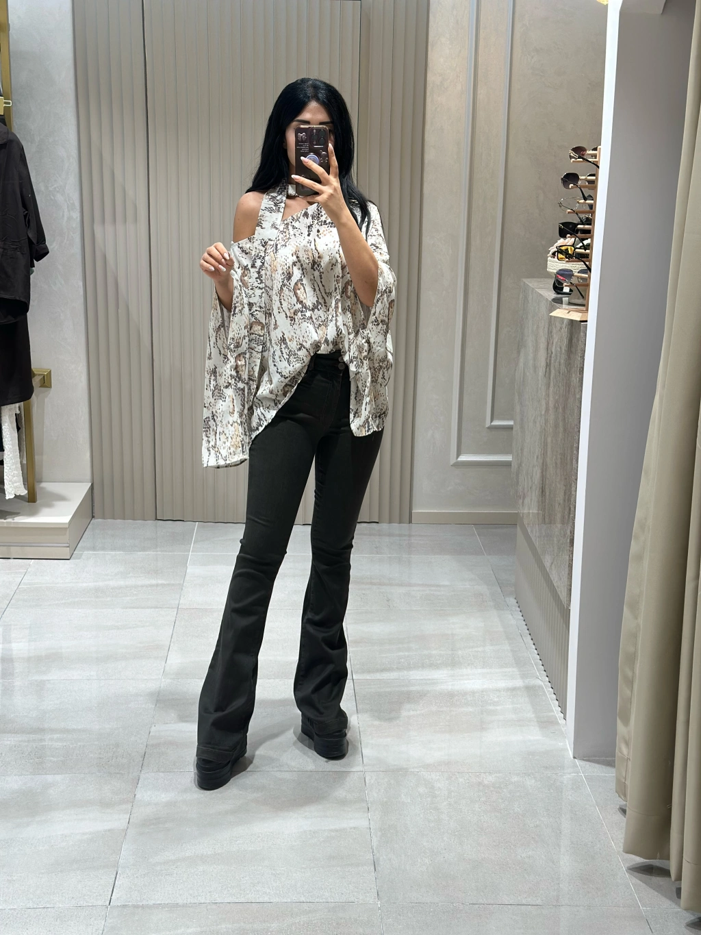 ÇİÇEK DETAYLI TRİKO BLUZ SİYAH