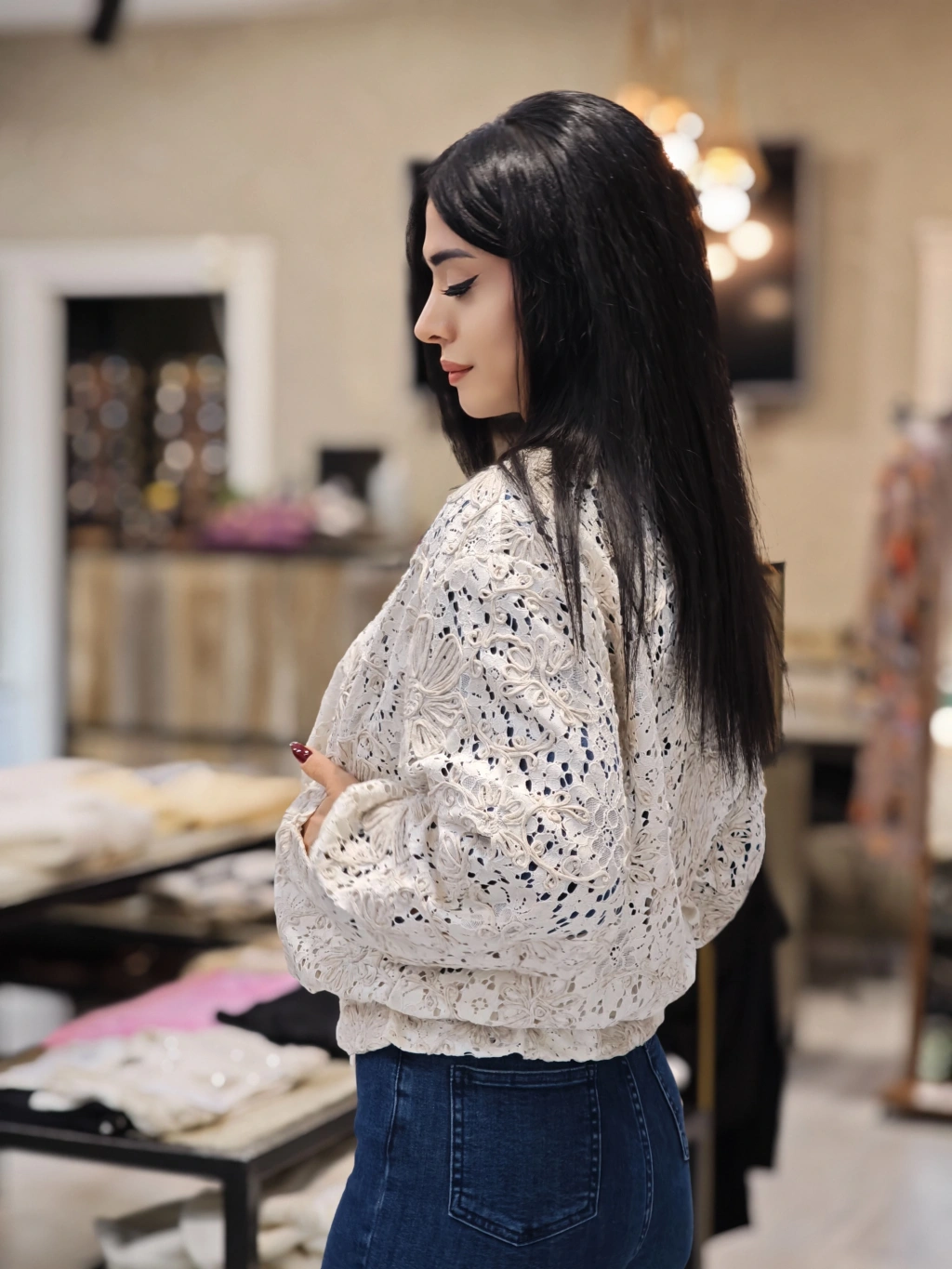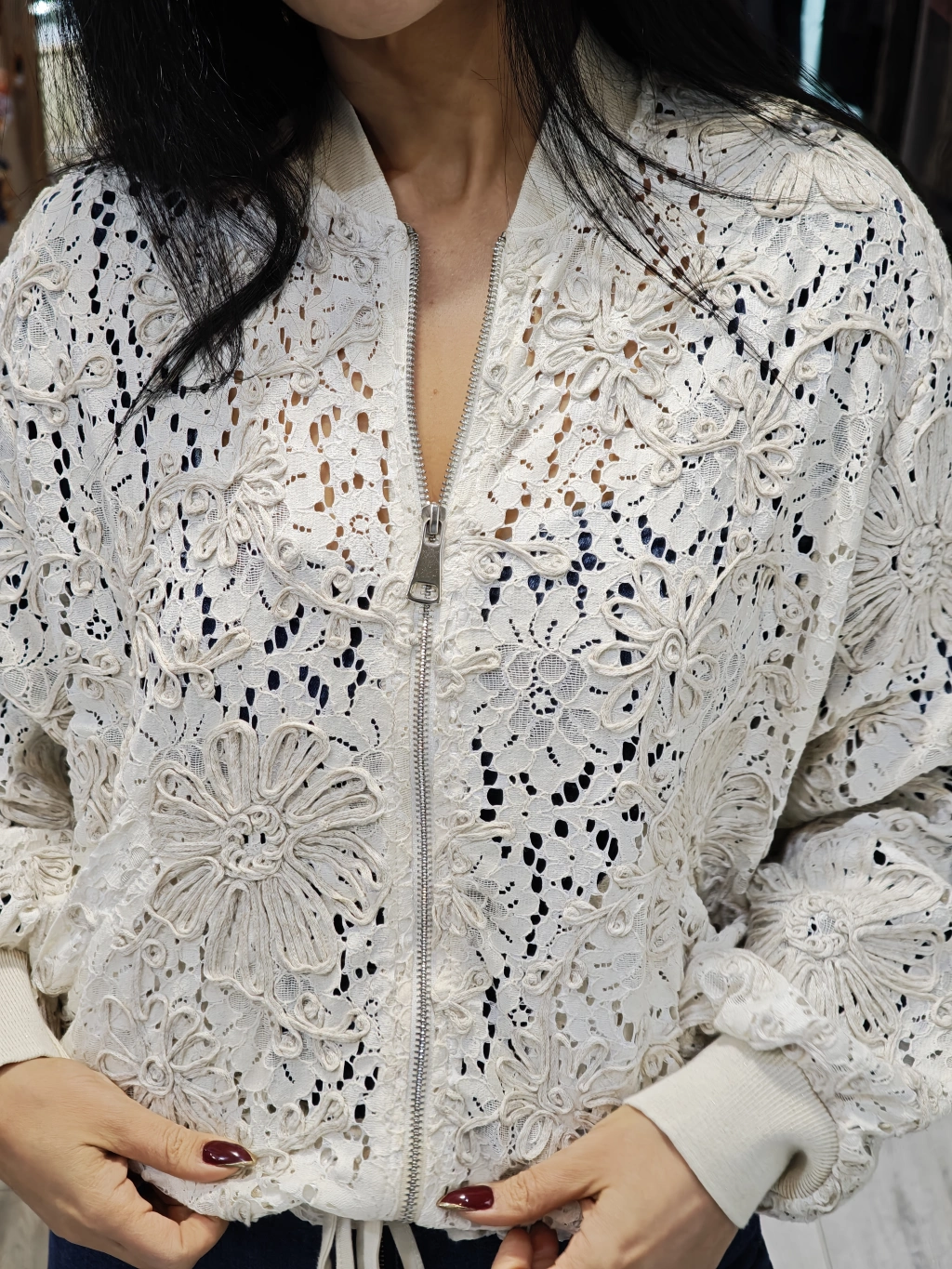 EKRU ÇİÇEKLİ FERMUARLI HIRKA
