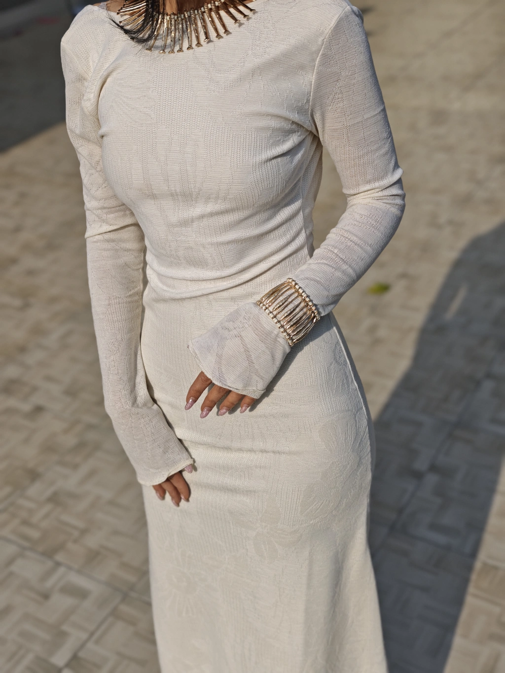 İTHAL GÜPÜR DETAYLI BEYAZ ELBİSE