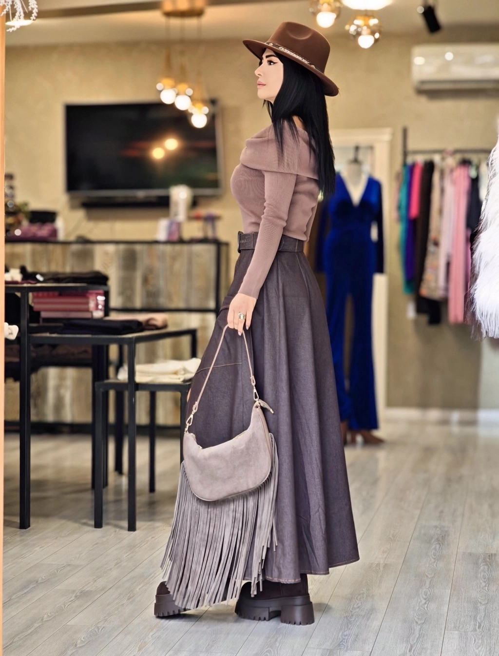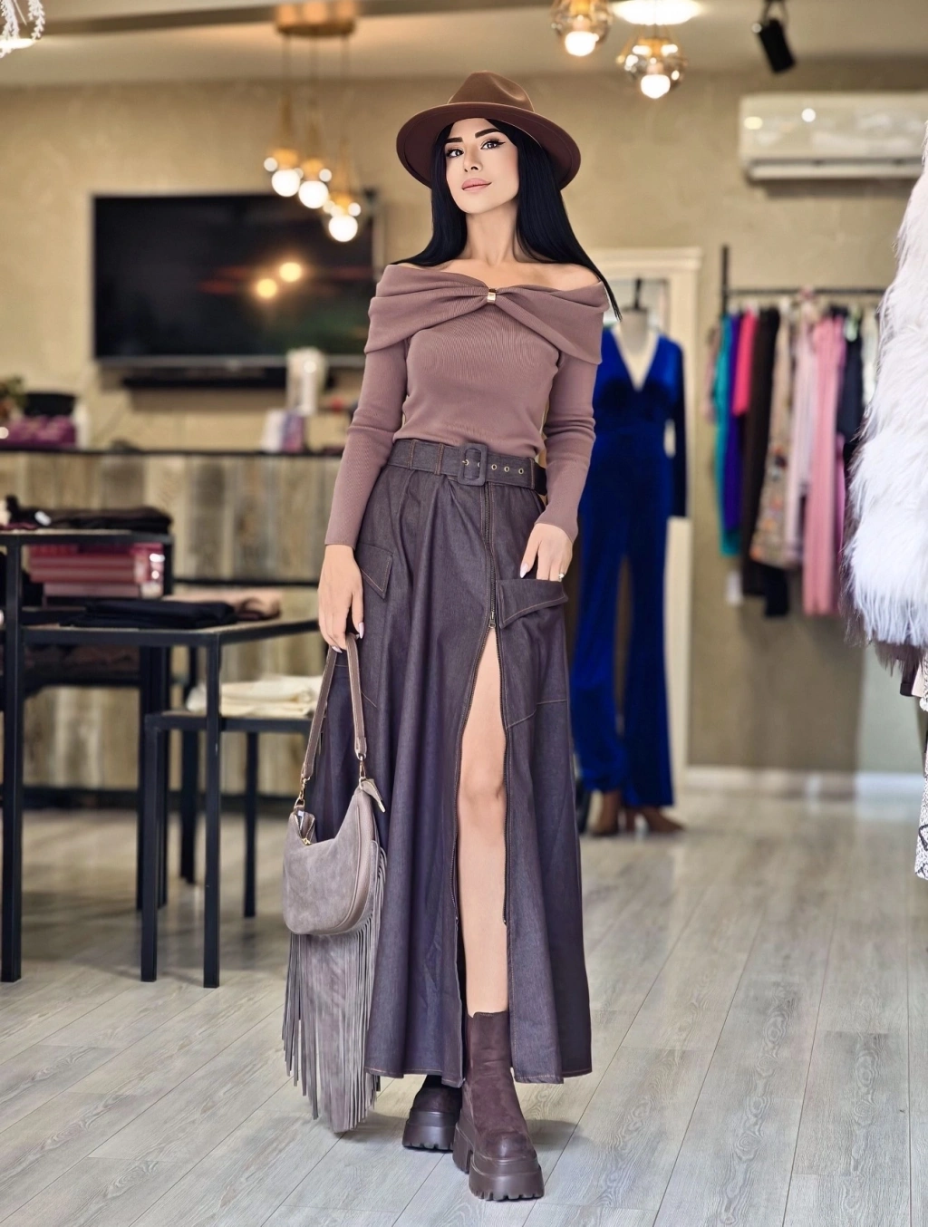 TAŞ RENGİ SÜET ETEK