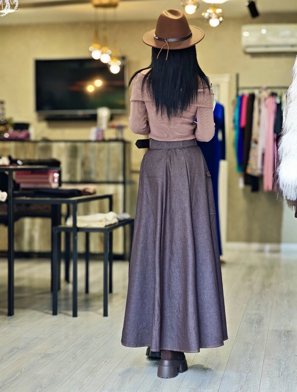 SATEN KAHVERENGİ ETEK