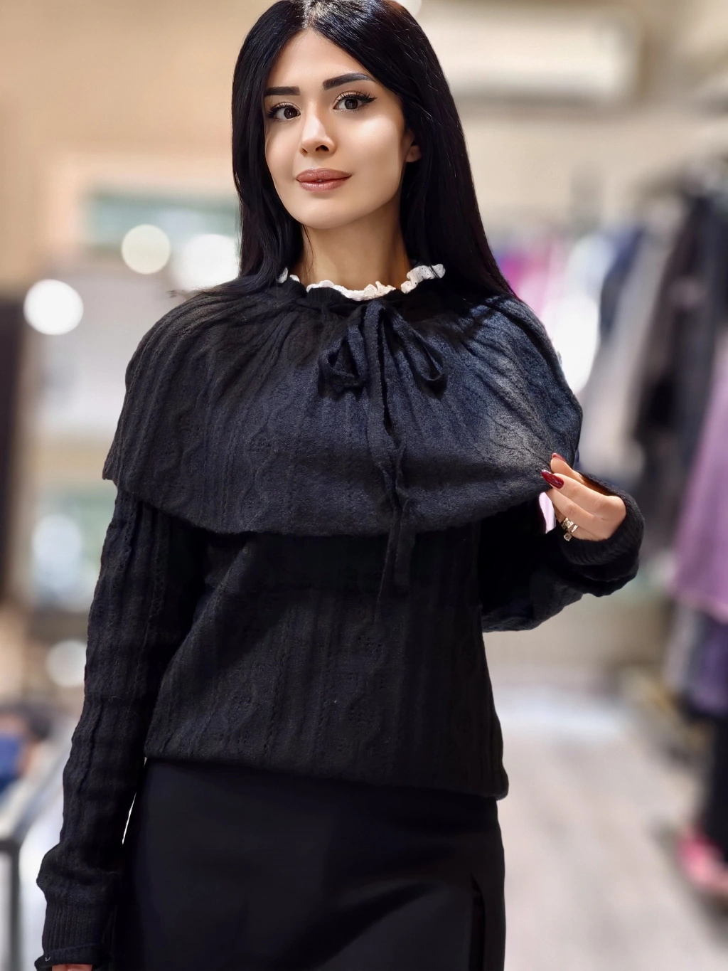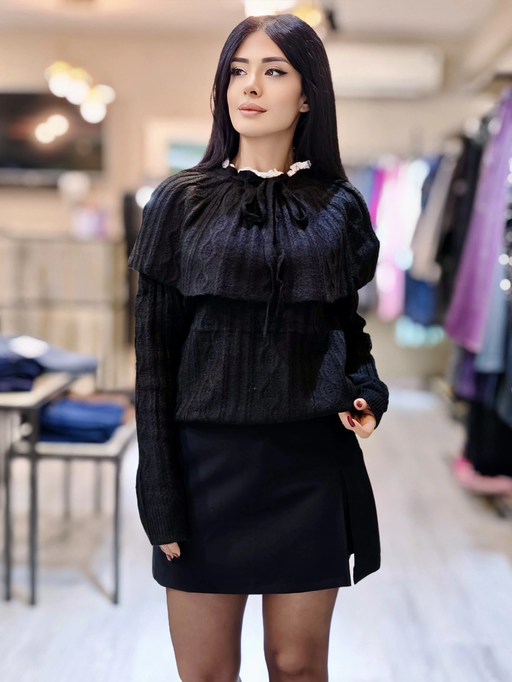 FIRFIR YAKA DETAY SİYAH TRİKO