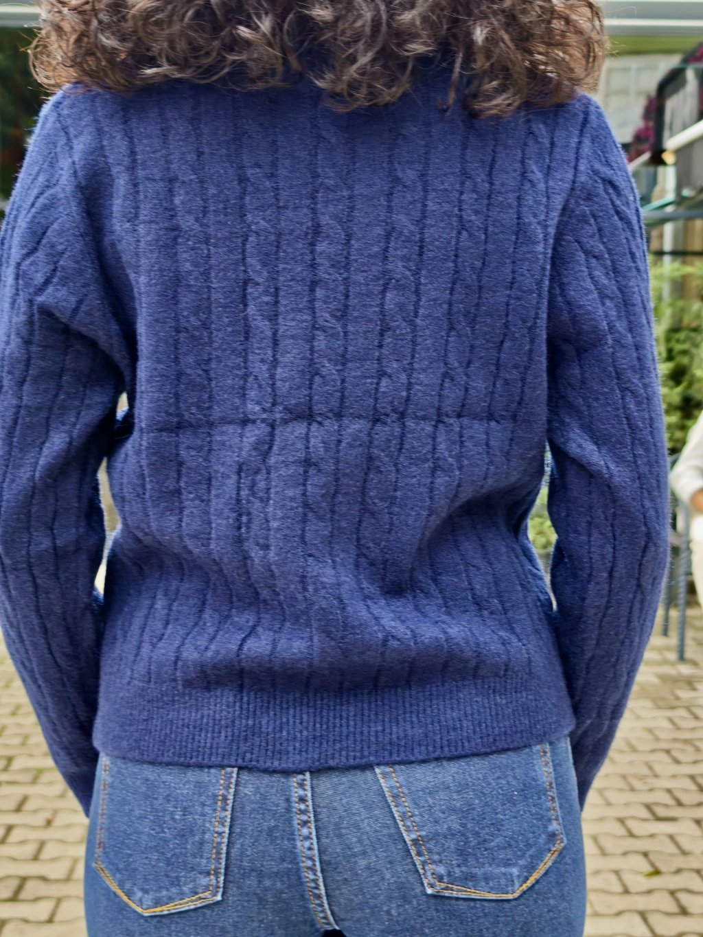MAVİ ÇİÇEK DETAYLI TRİKO HIRKA