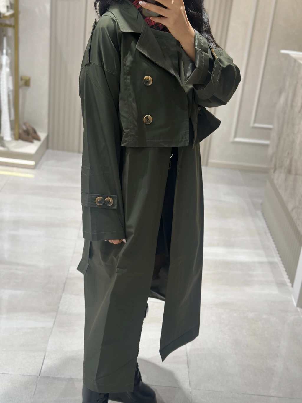 İTHAL KUMAŞ TRENCH SIRT BAĞLAMA DETAY HAKİ