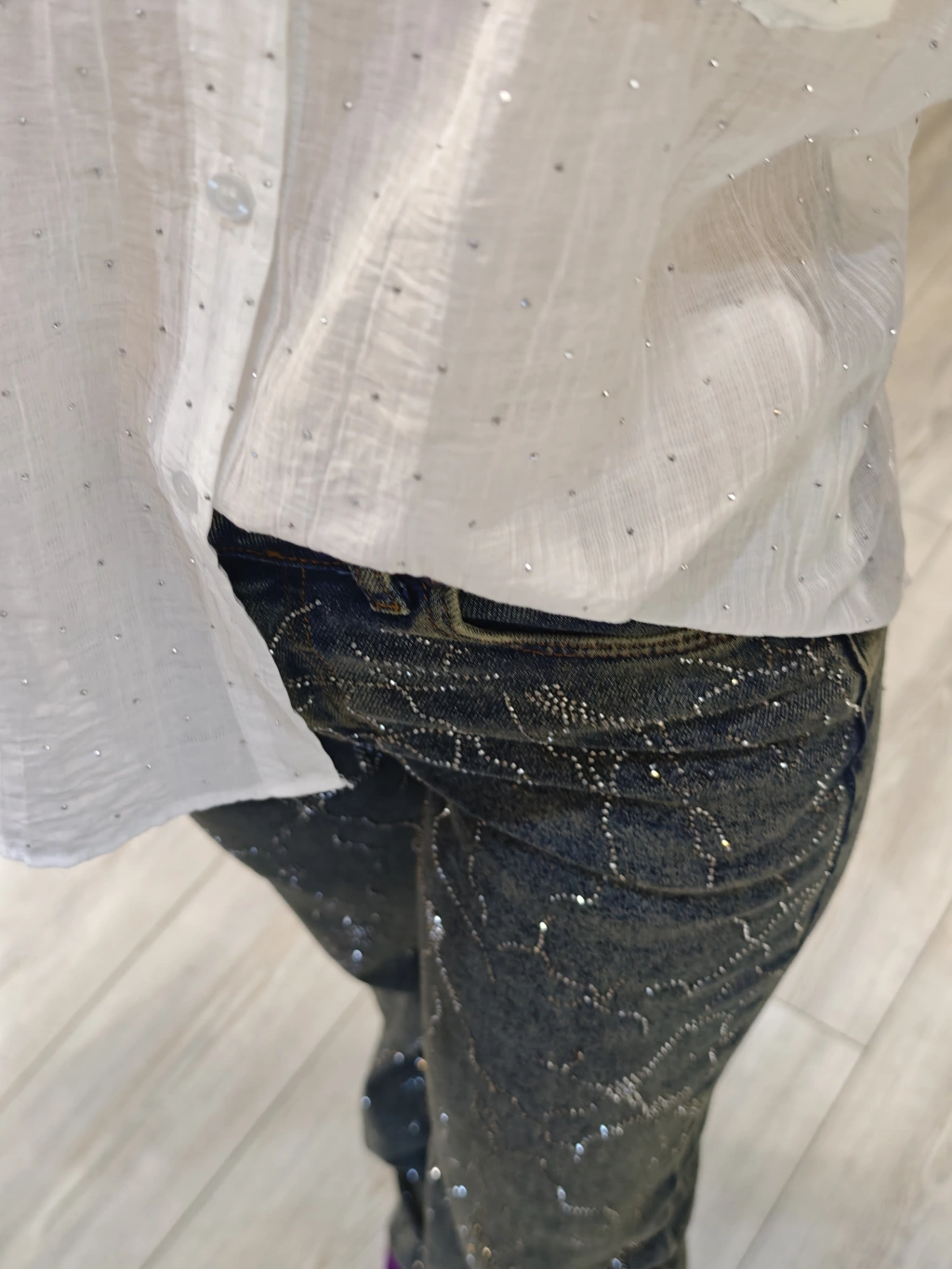 SİYAH TÜL İŞLEMELİ BEYAZ GÖMLEK