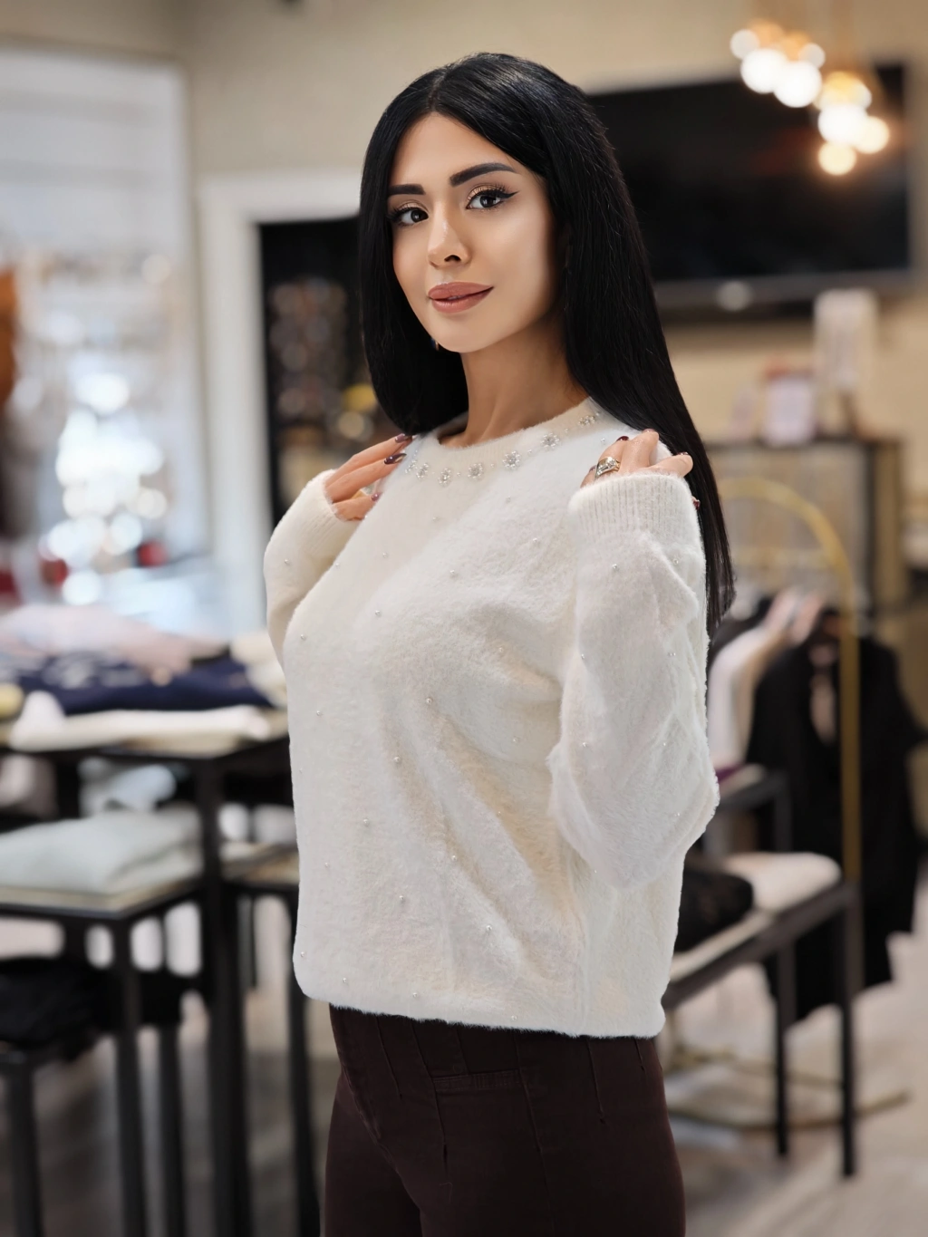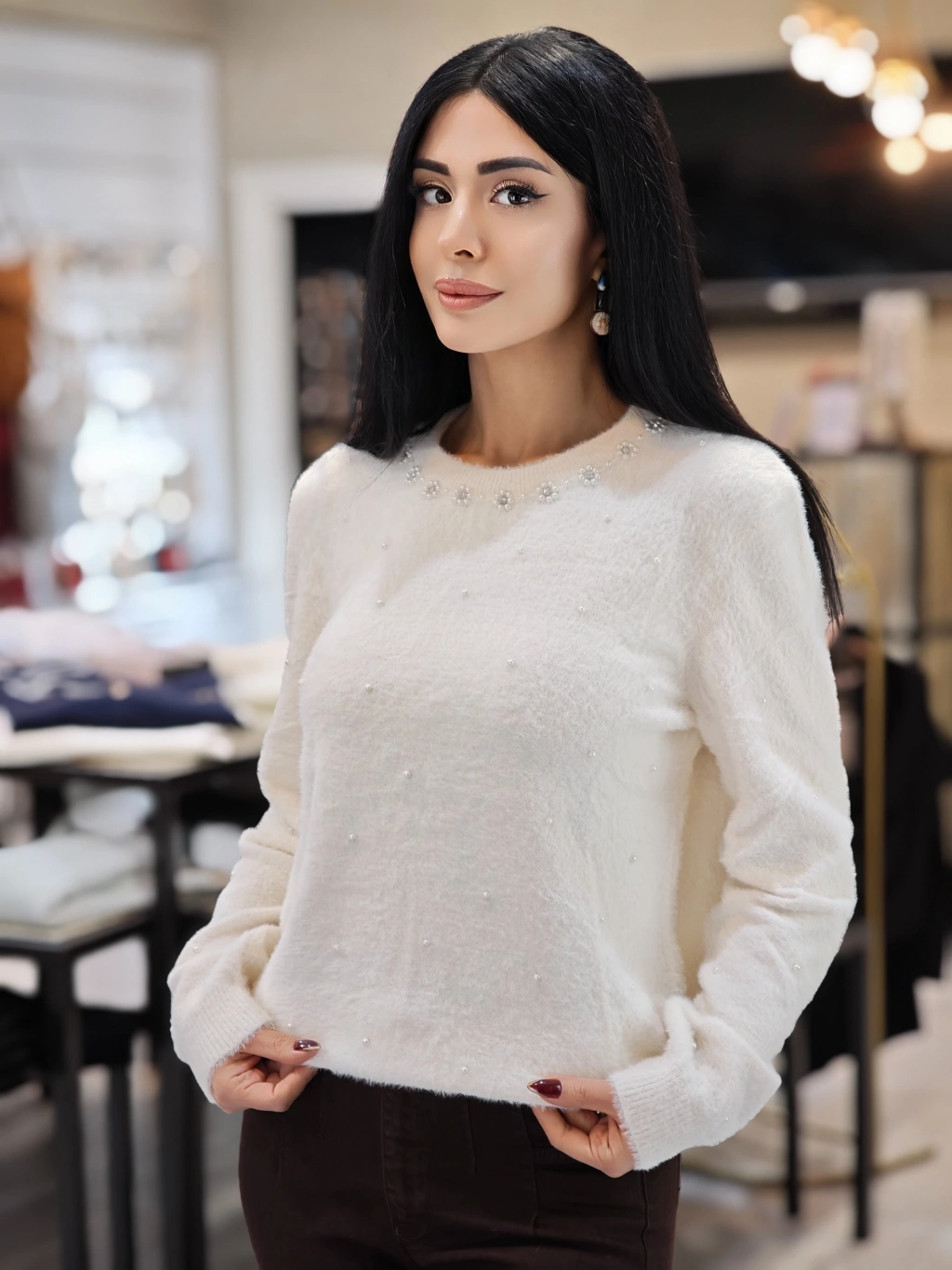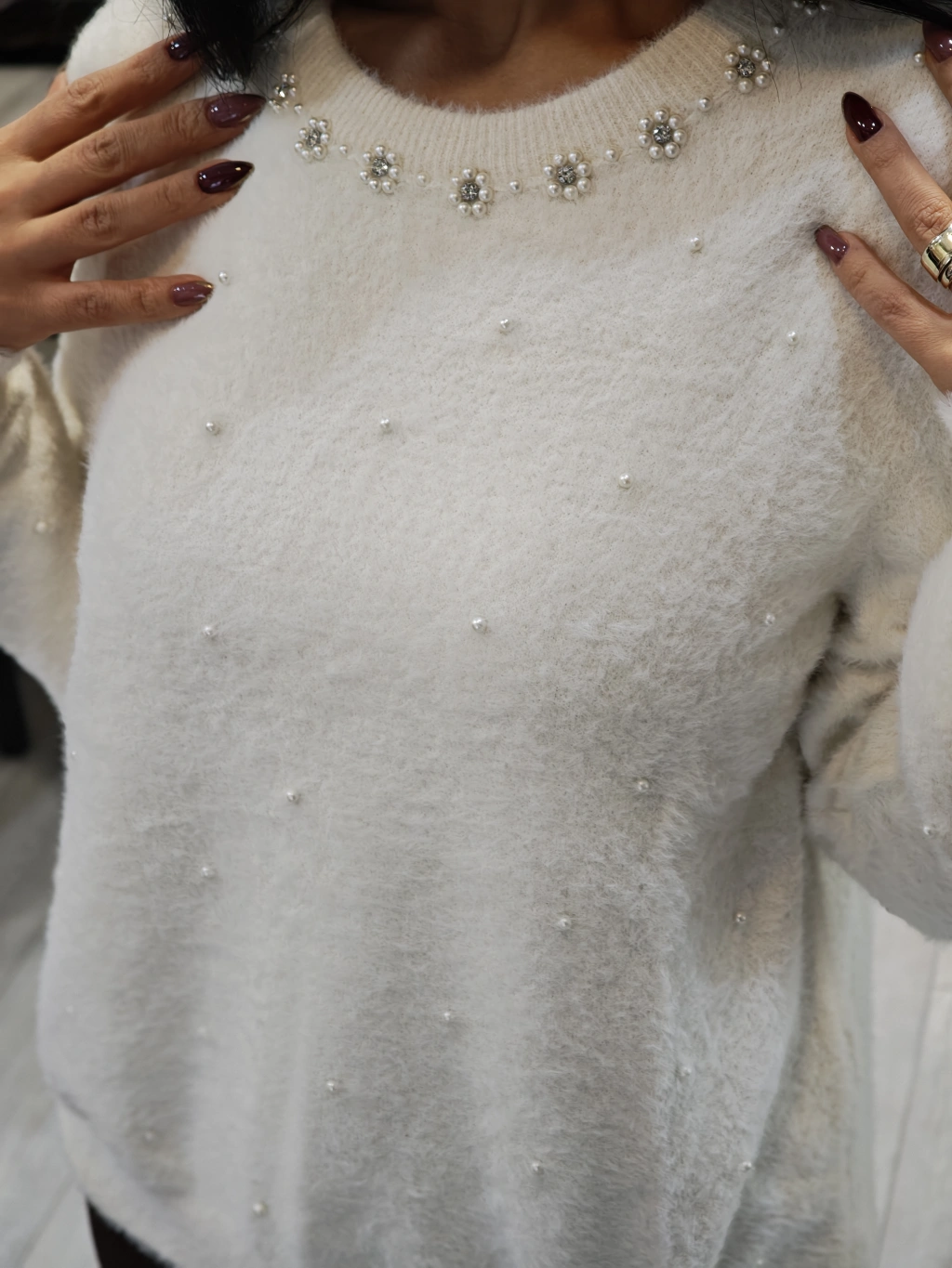 İNCİ DETAY YUMOŞ BEYAZ KAZAK