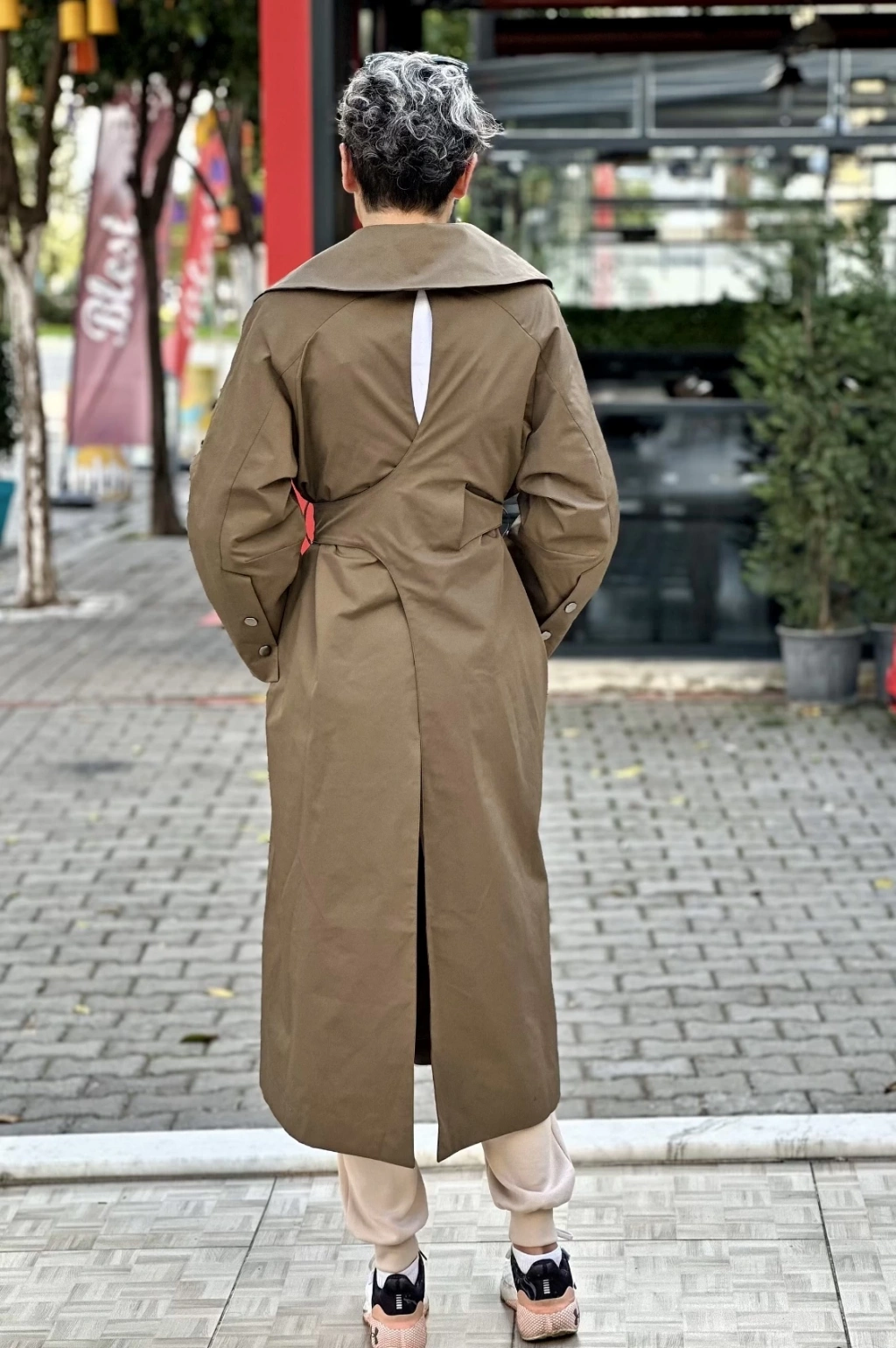 İTHAL KUMAŞ TRENCH SIRT BAĞLAMA DETAY HAKİ