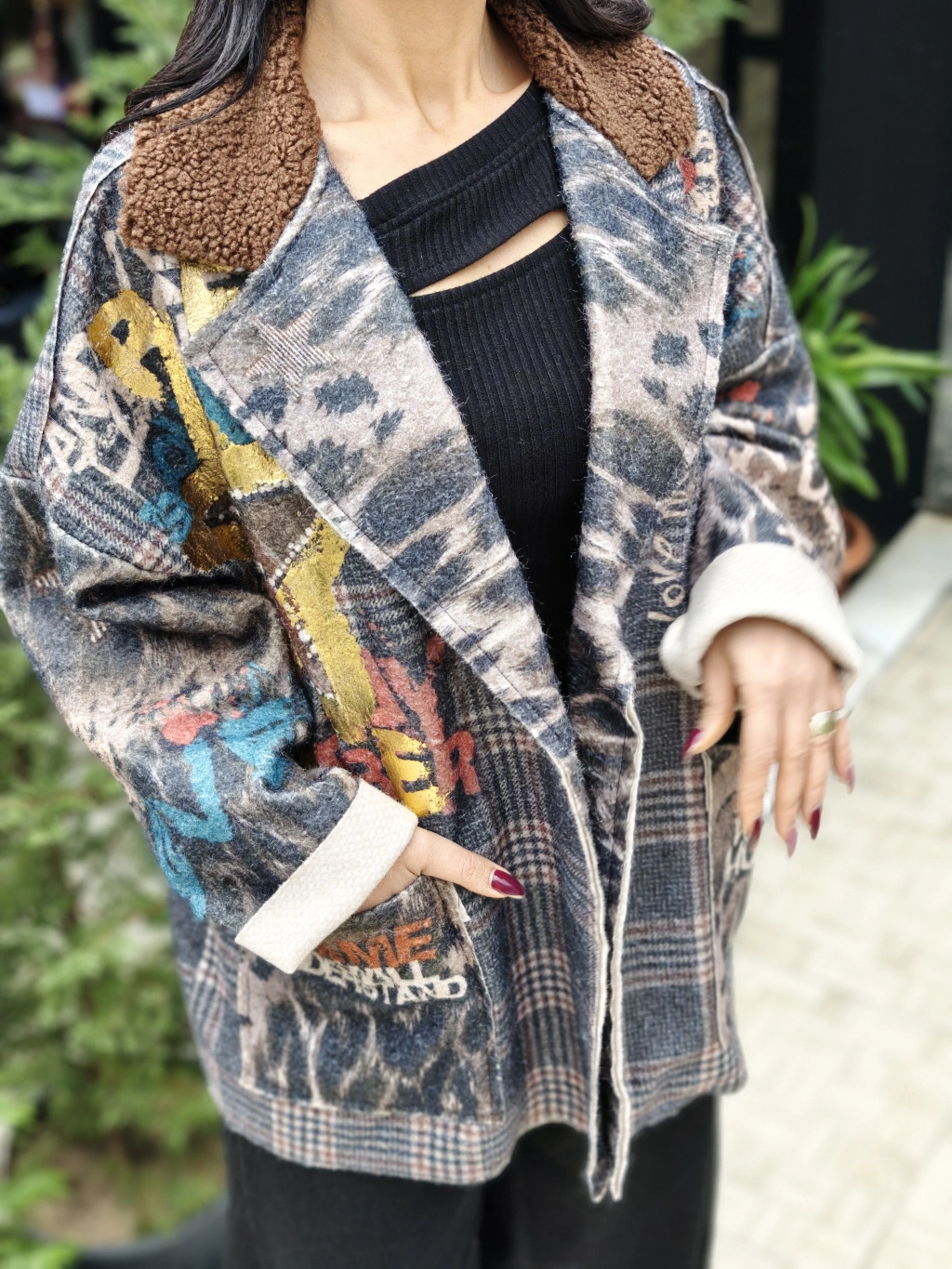 RENKLİ DERİ DETAY CEKET
