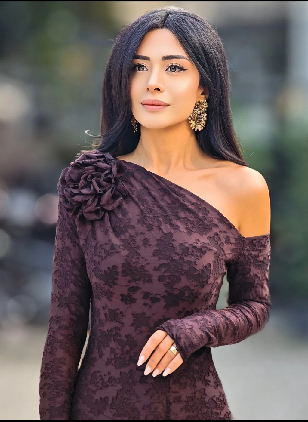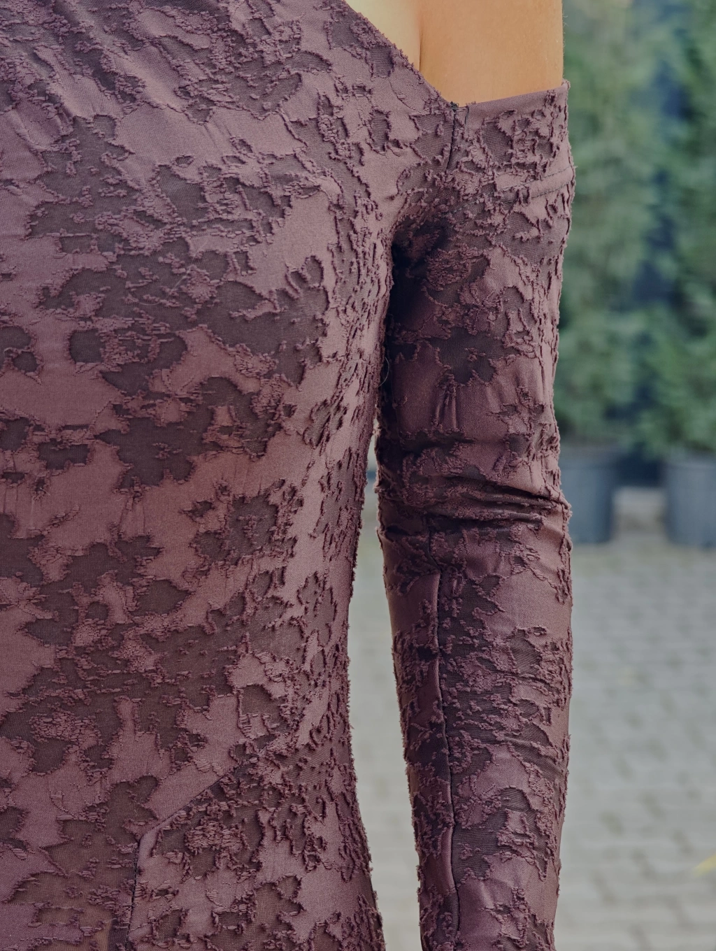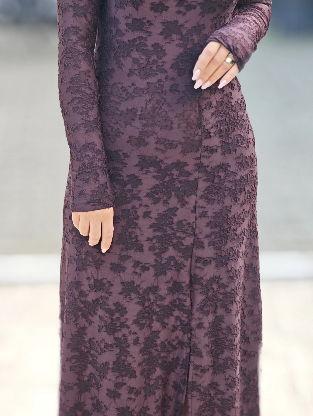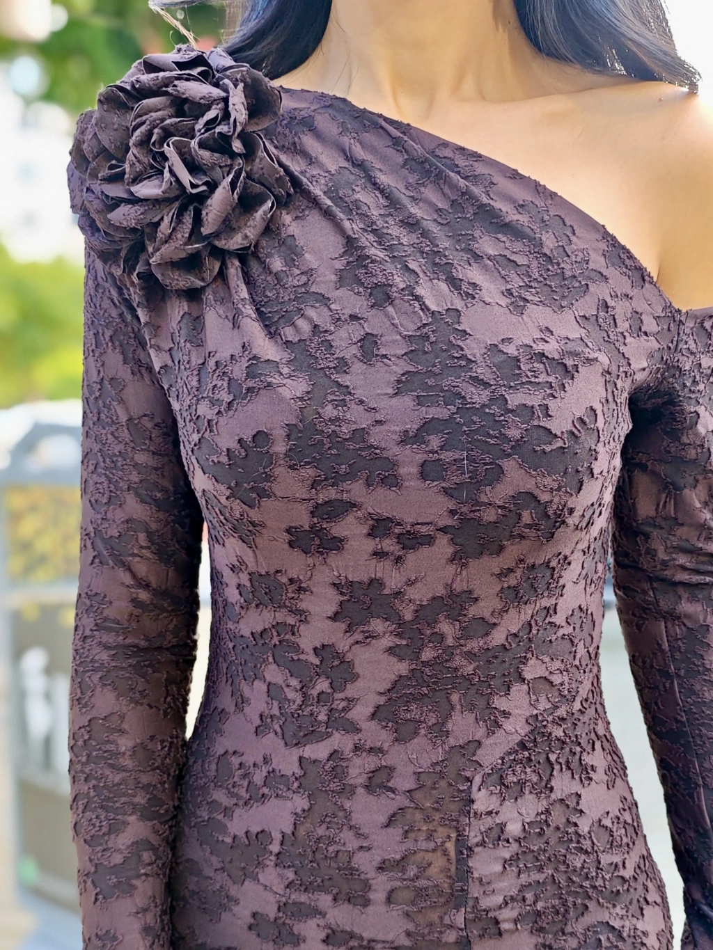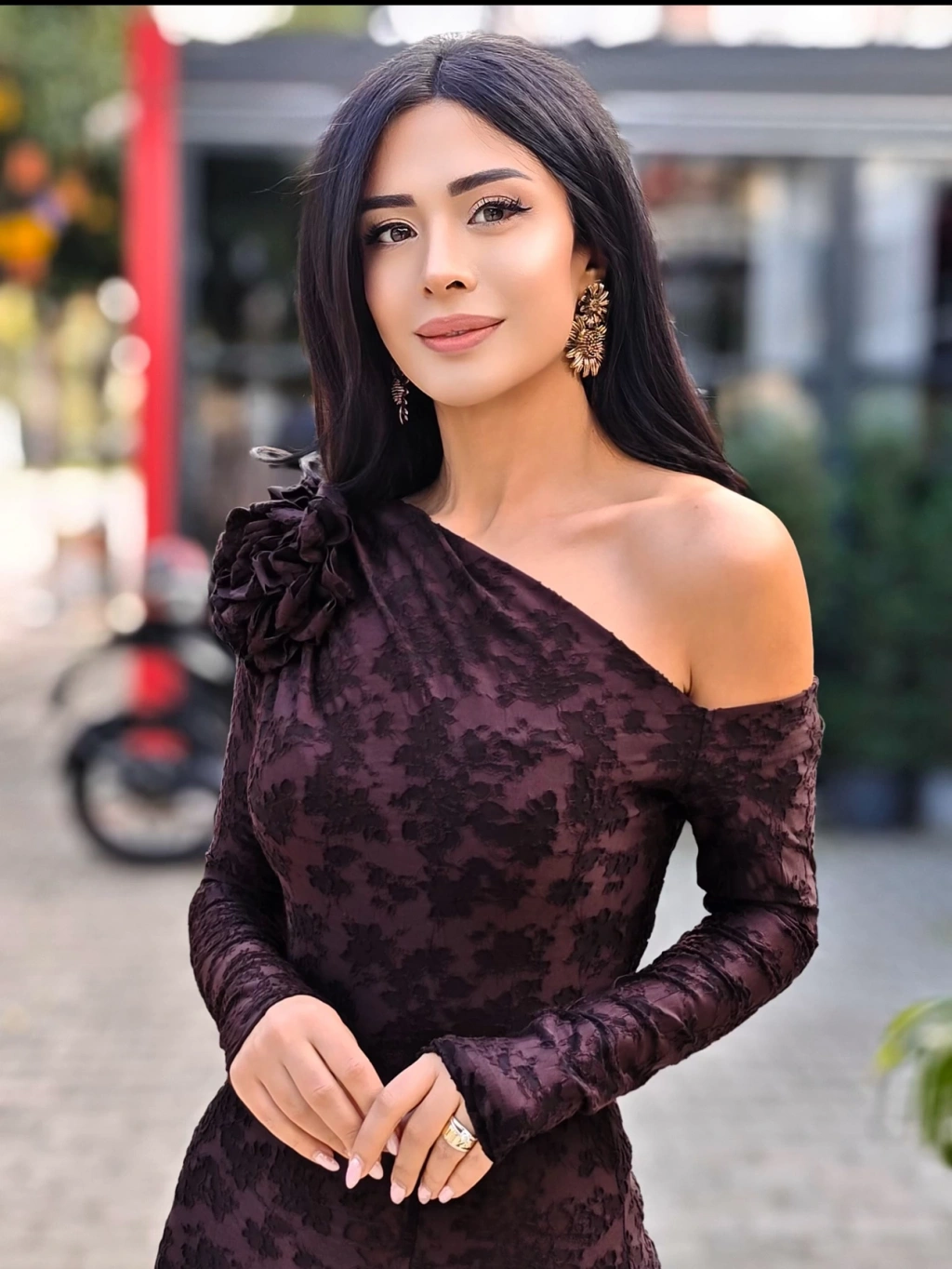 KAHVE GÜL BROŞ DETAYLI TÜL ELBİSE