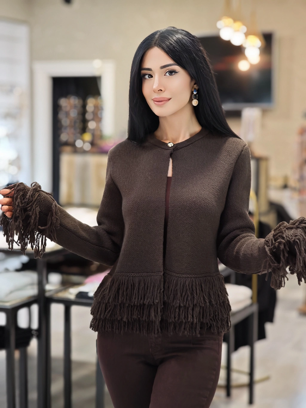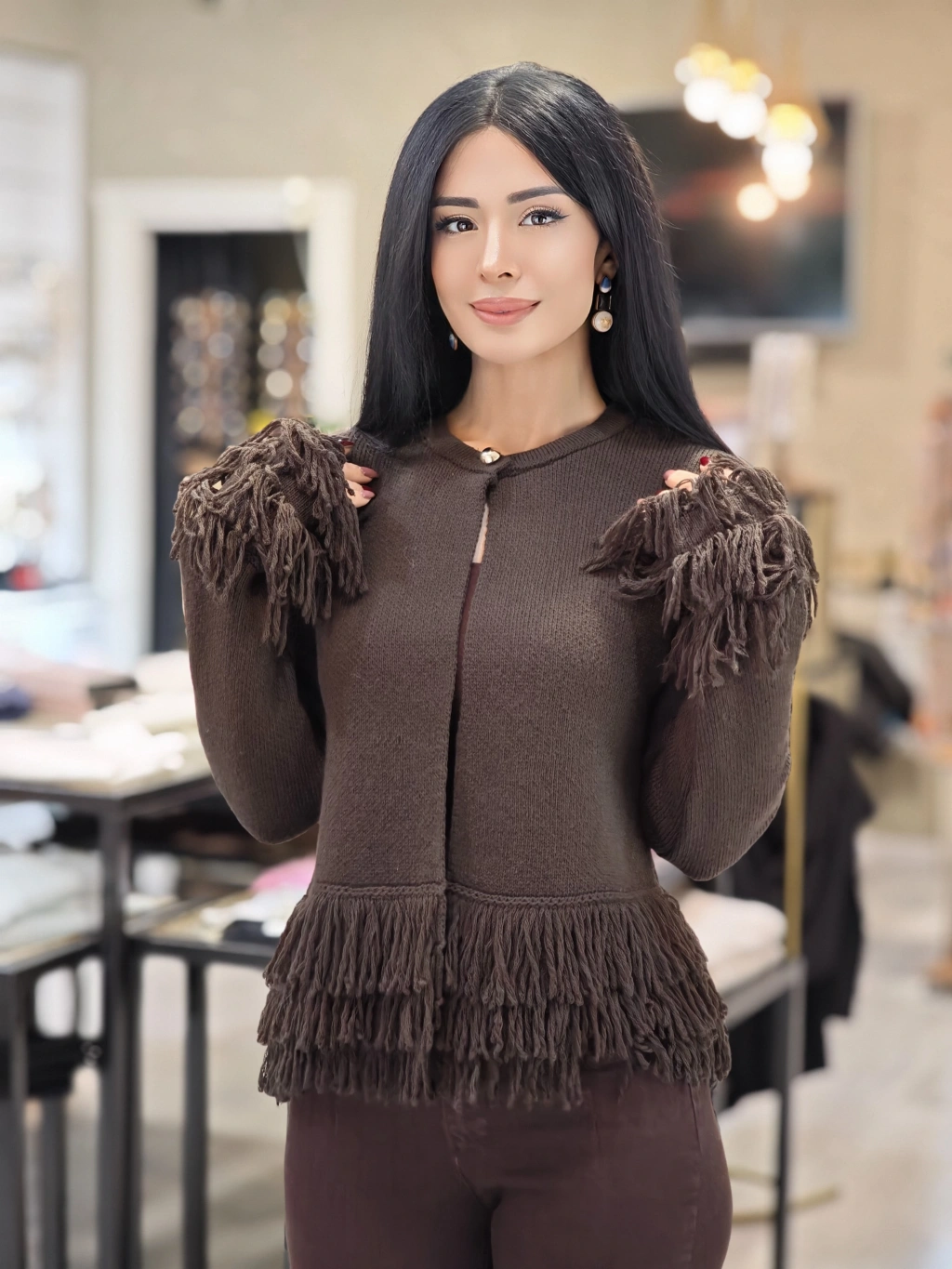 KAHVE PÜSKÜL KOL DÜĞMELİ HIRKA