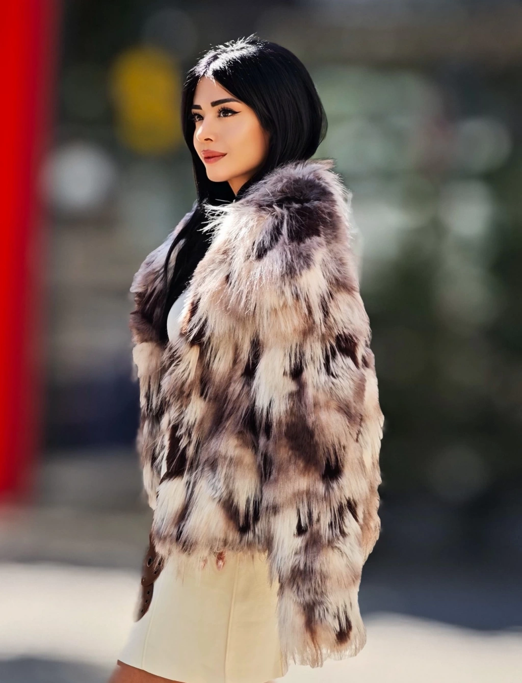 KAHVERENGİ KREM KARŞIK RENKLİ KÜRK PREMİUM KALİTE