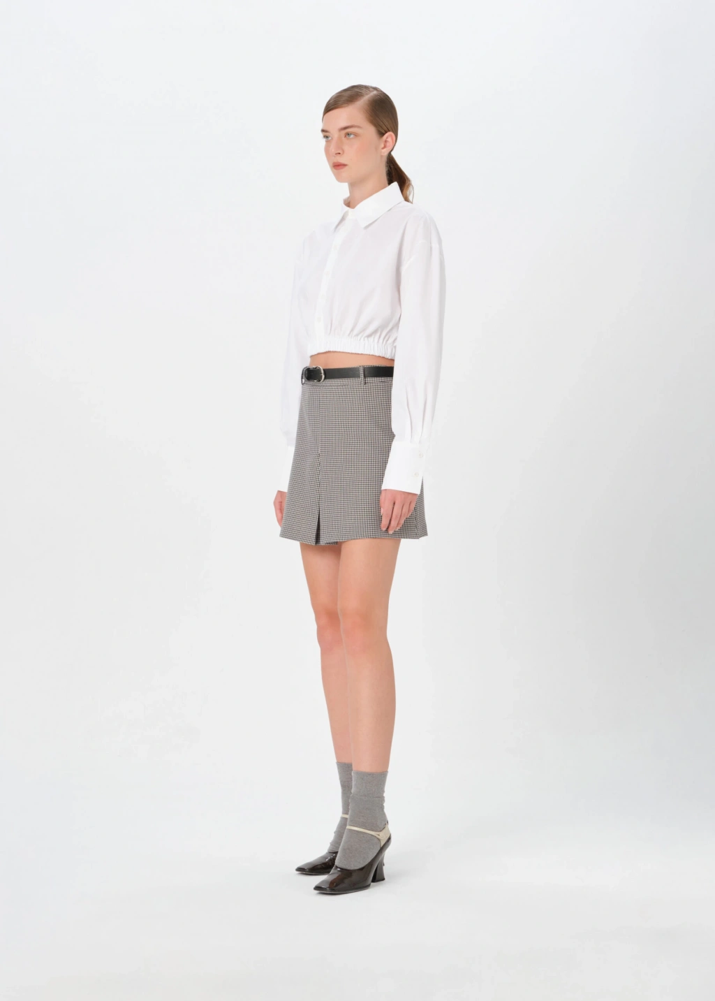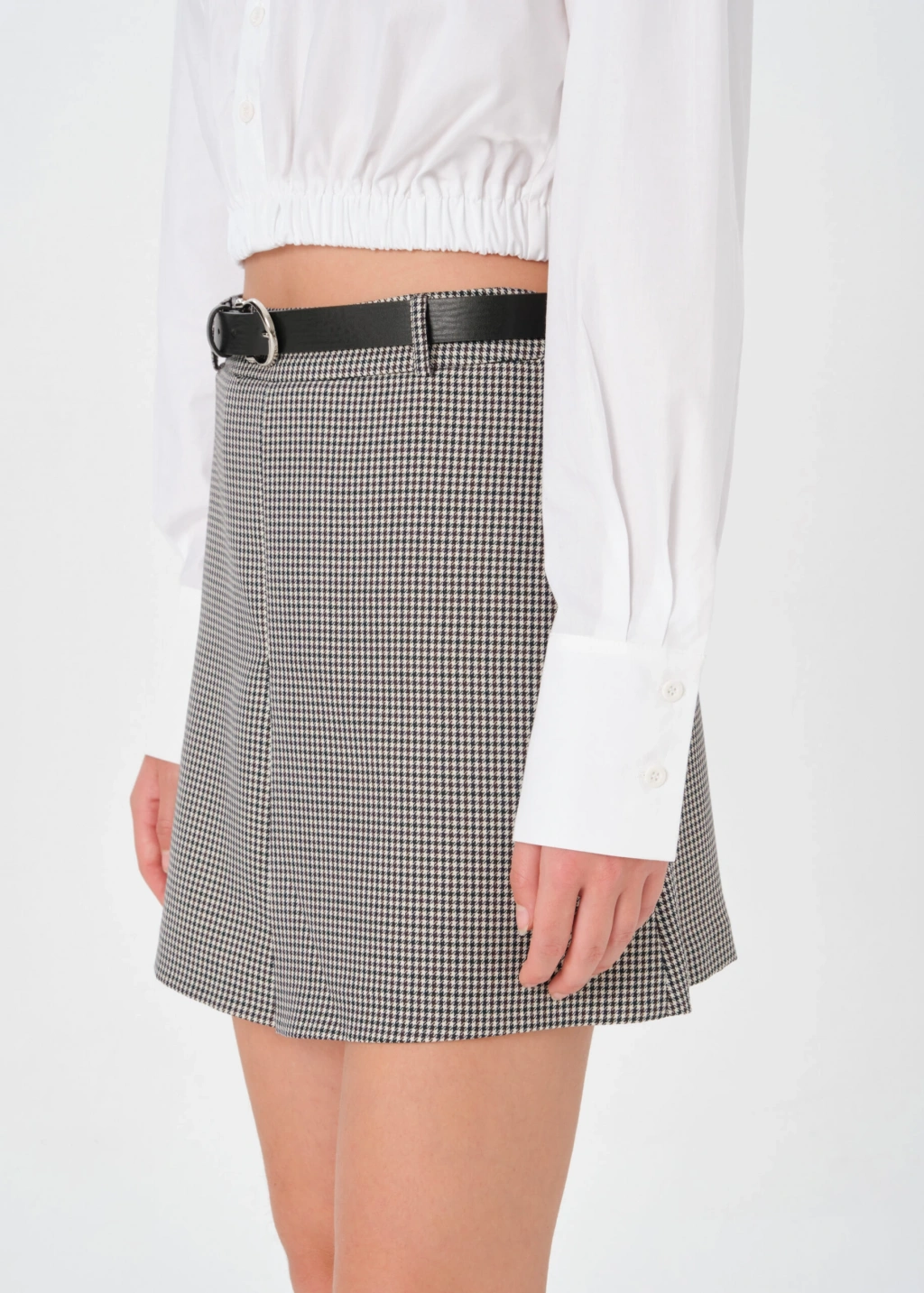 KEMERLİ GRİ DESENLİ PİLELİ ETEK