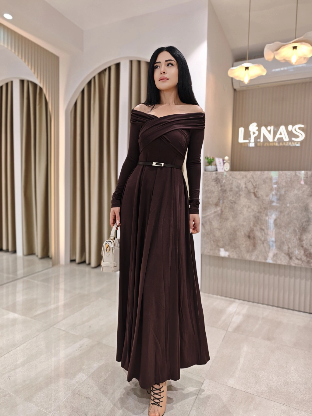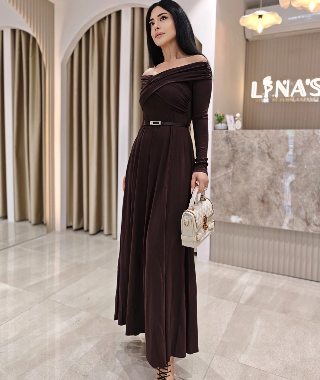 KEMERLİ KAYIK YAKA ELBİSE LFN