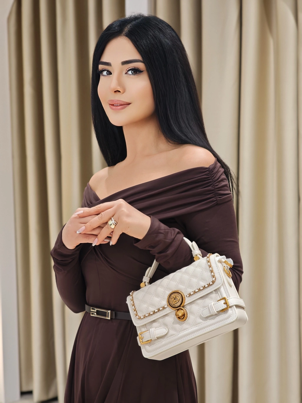 GÜPÜR İŞLEMELİ EKRU ELBİSE