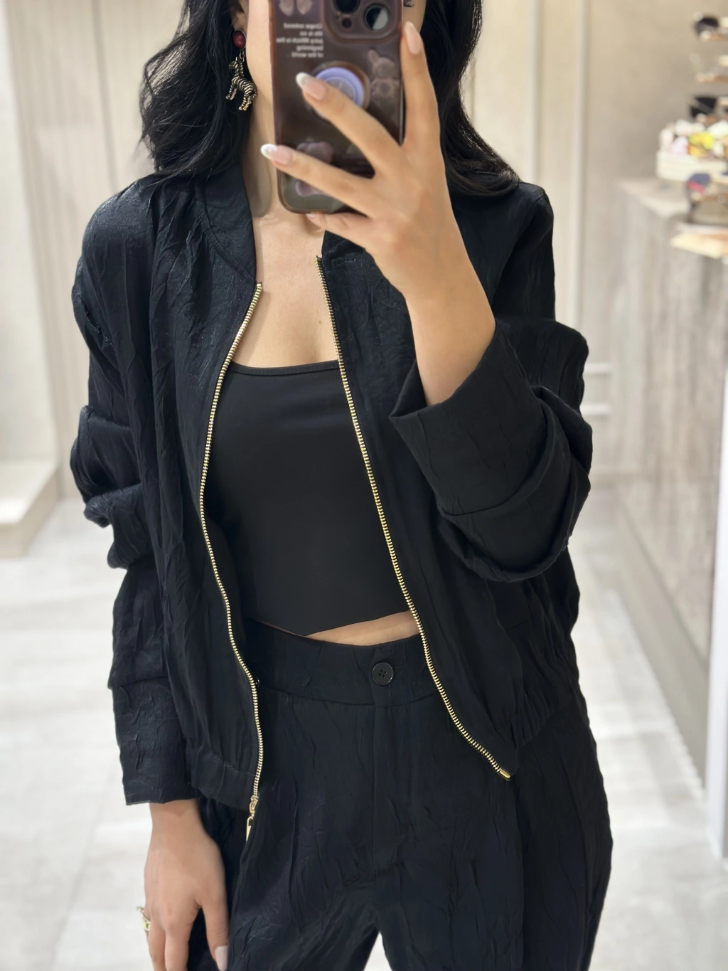 KIRIŞIK SATEN DOKULU BOMBER CEKET