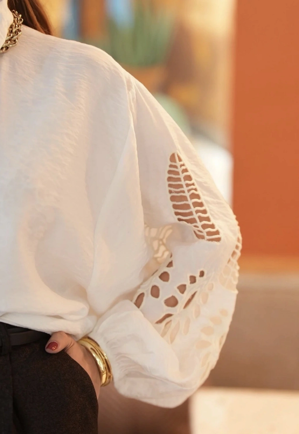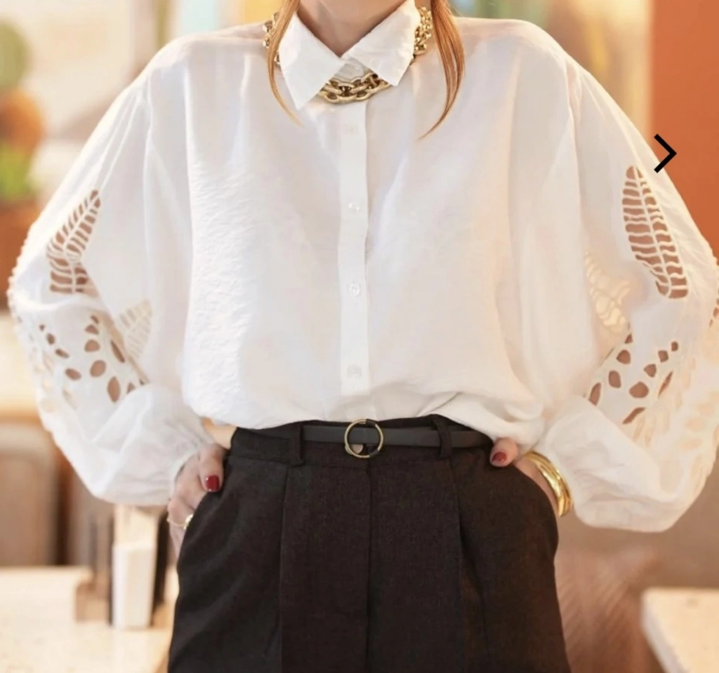 KOL İŞLEMELİ GÖMLEK BEYAZ