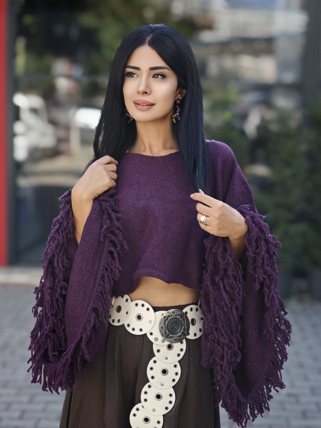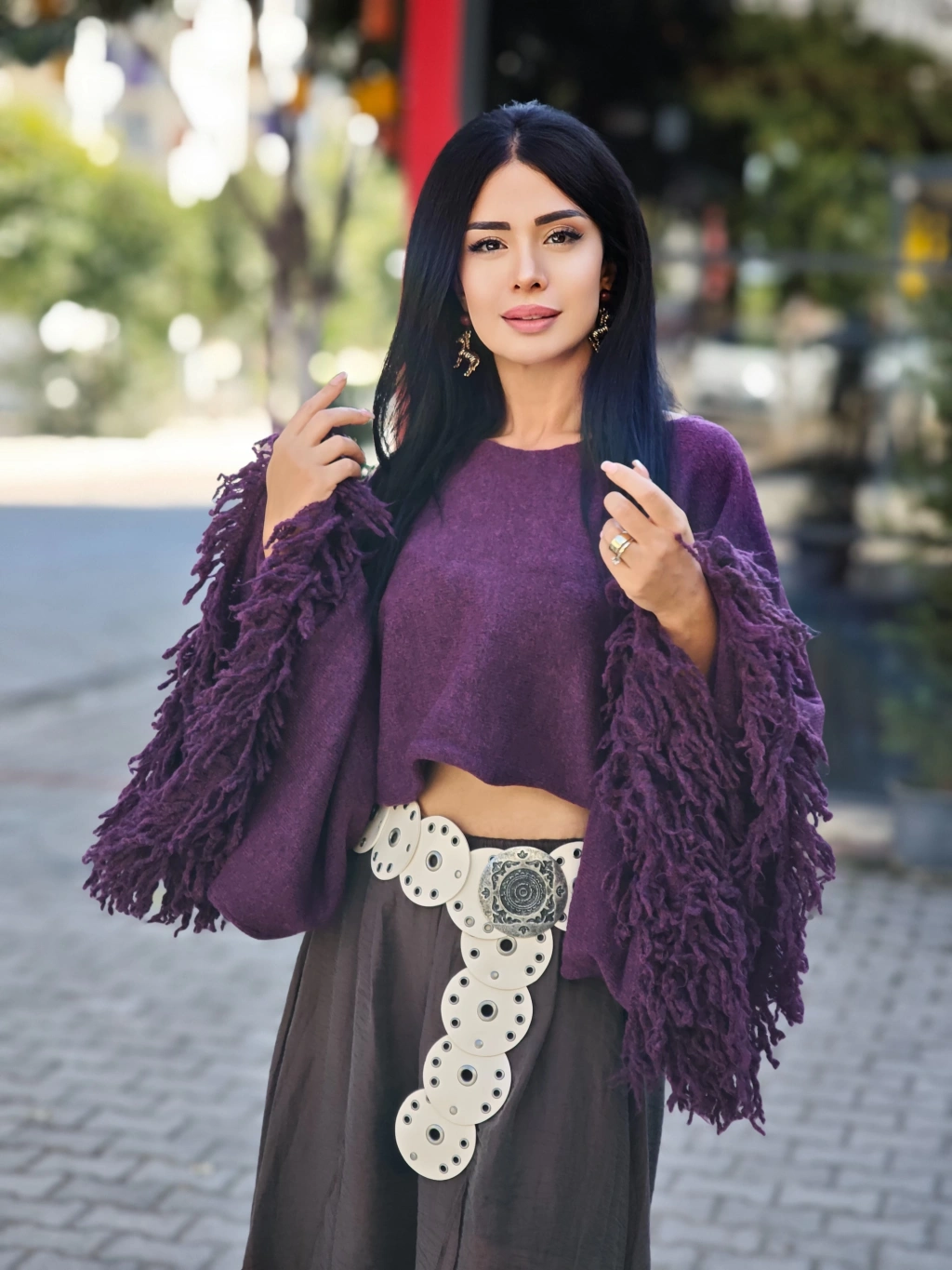 KOLLARI PÜSKÜL MÜRDÜM RENGİ TRİKO