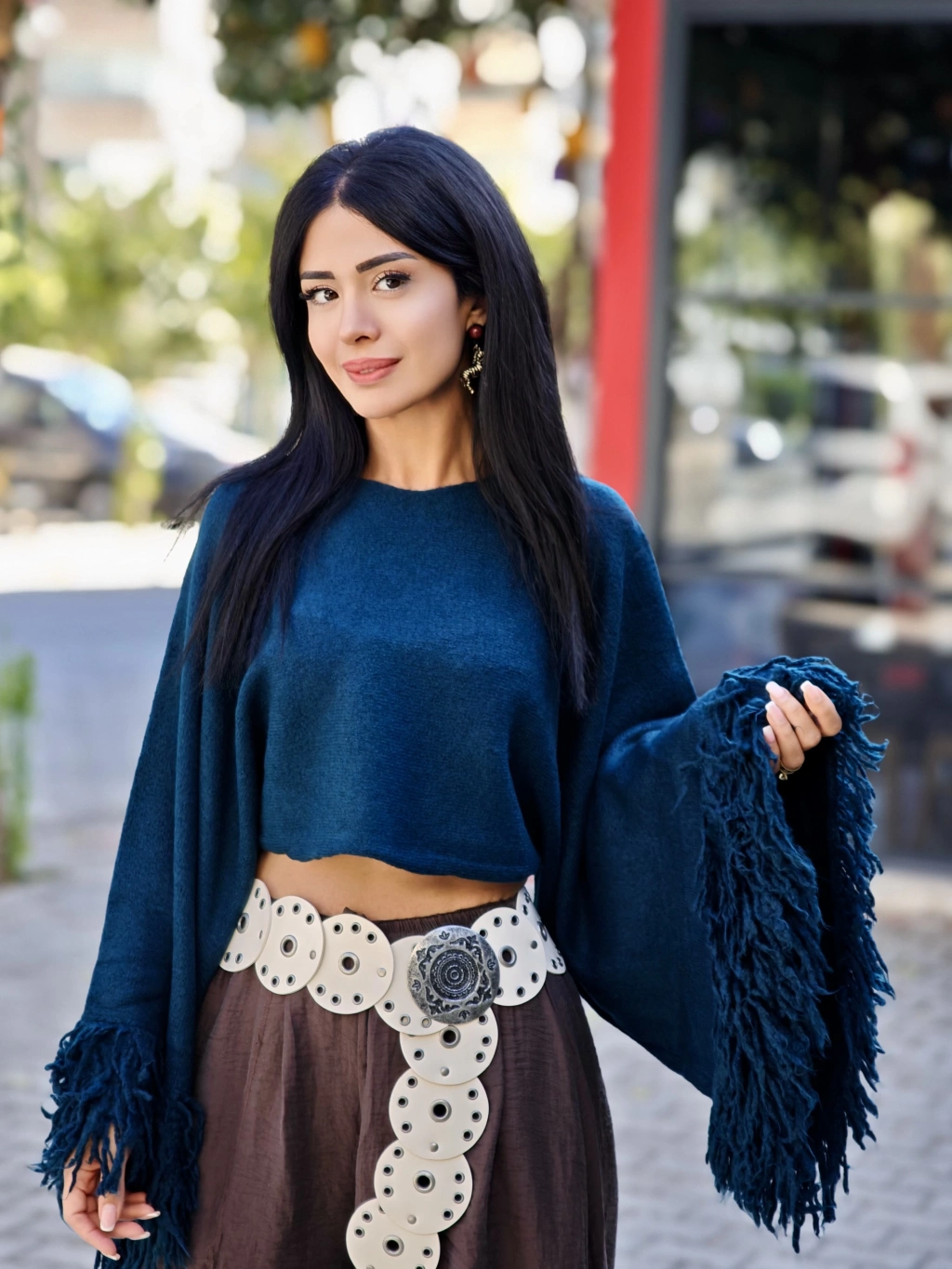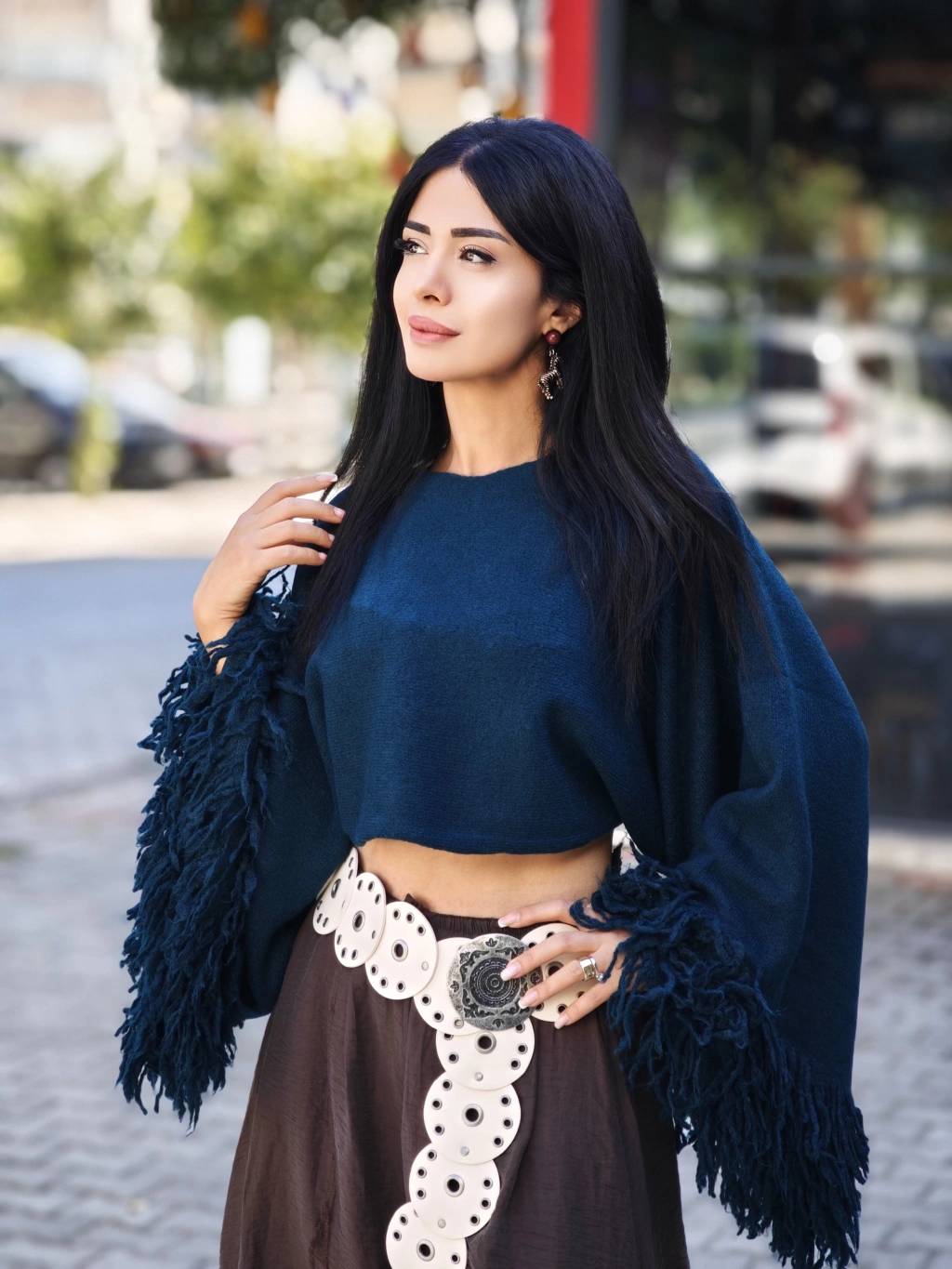 KOLLARI PÜSKÜL PETROL RENGİ TRİKO