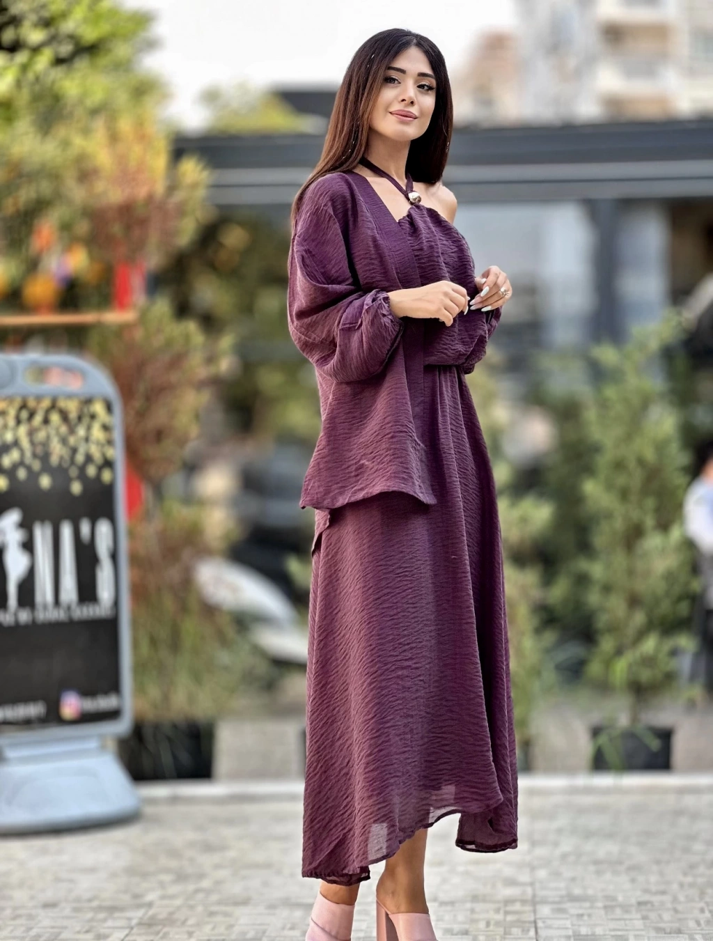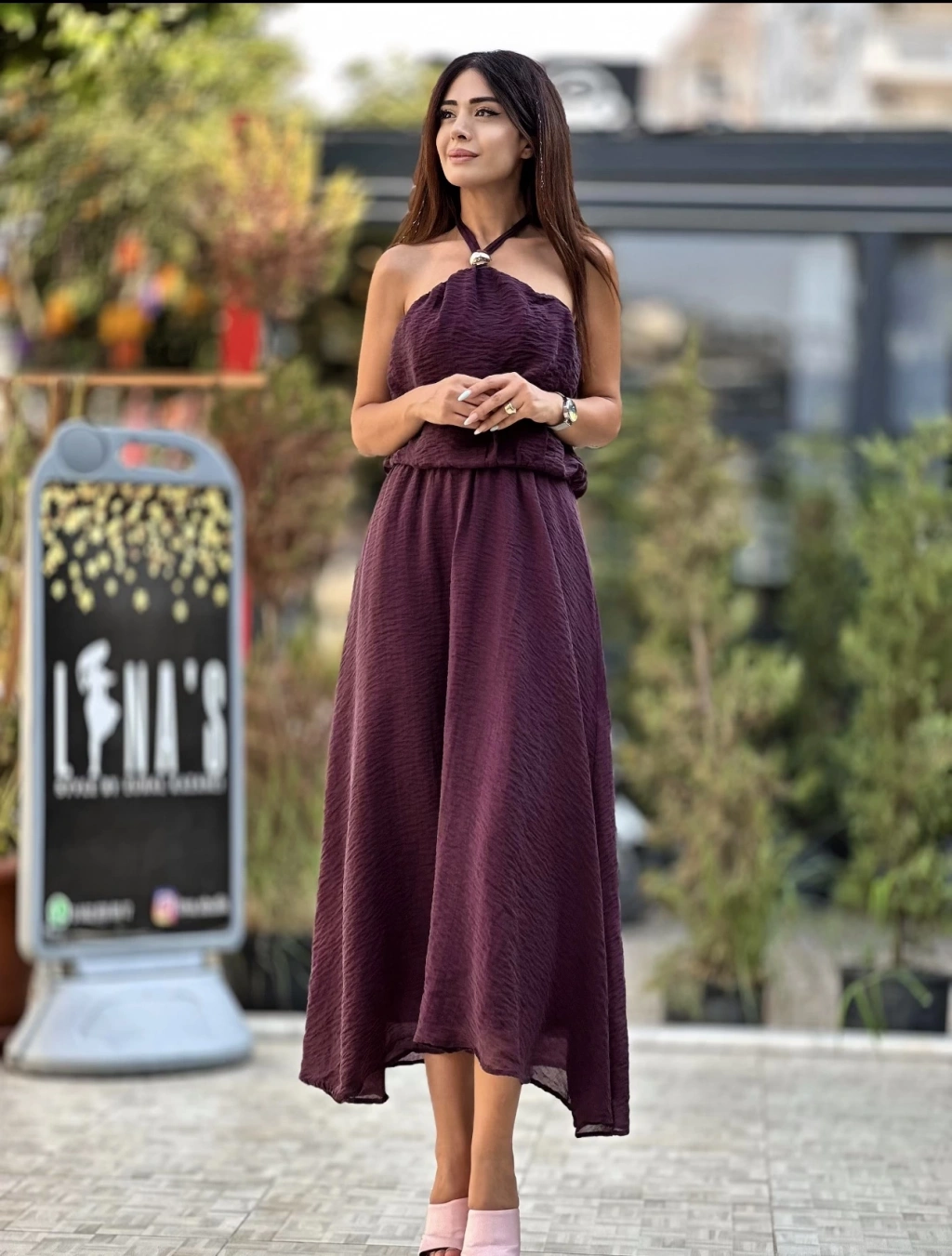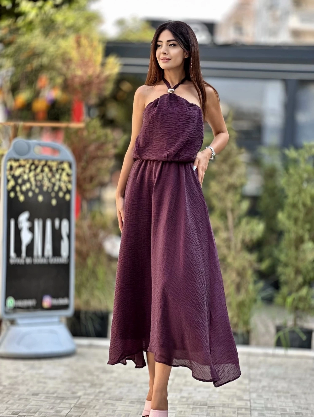 MÜRDÜM YAN DERİ TOKALI ELBİSE