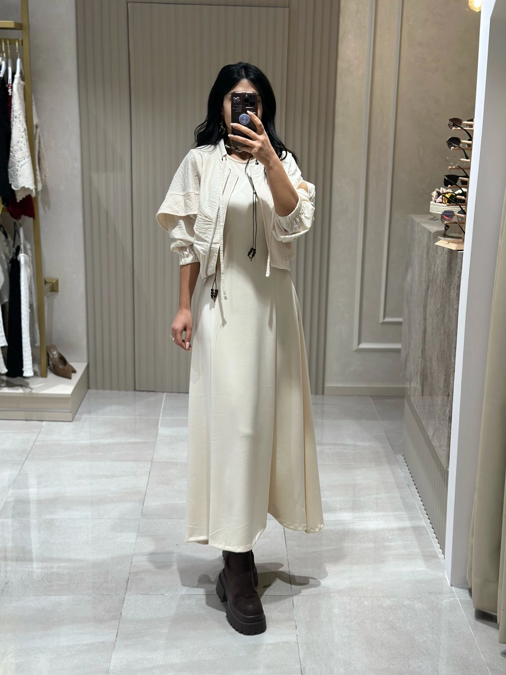 KETEN BEL DEKOLTELİ ELBİSE FM