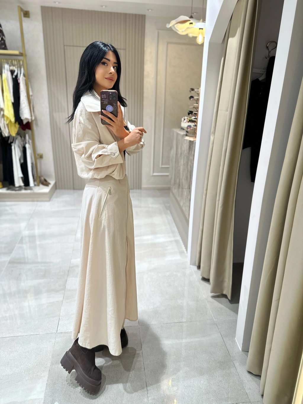 KEMERLİ KAYIK YAKA ELBİSE LFN