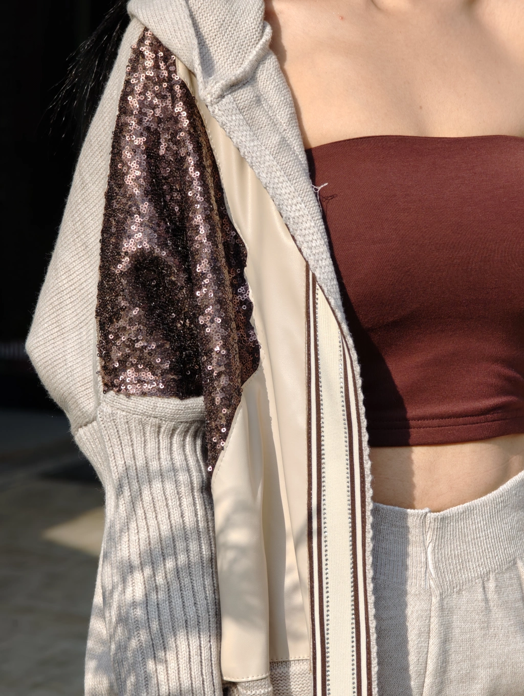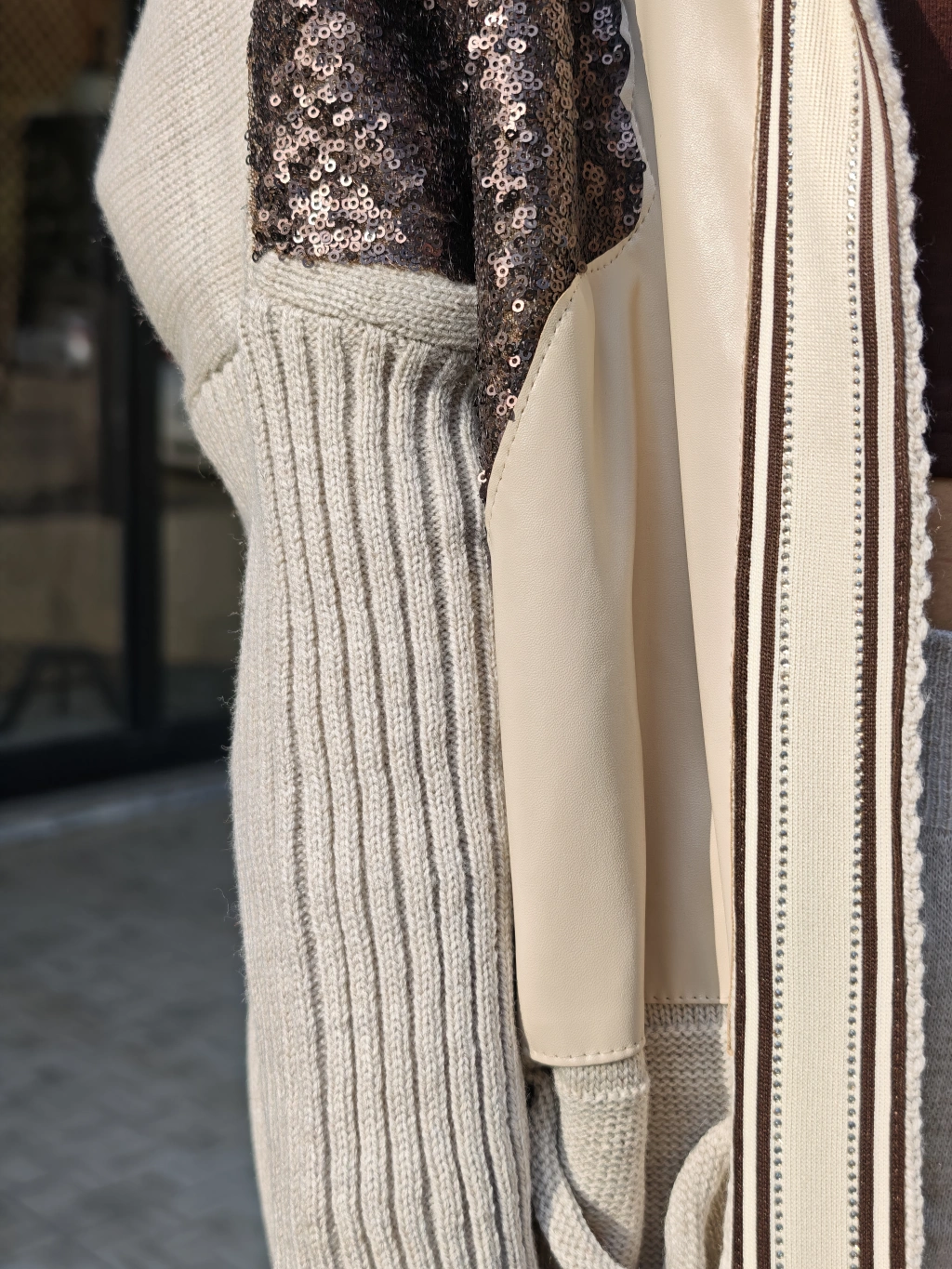 DERİ PÜSKÜL VE TRİKO DETAYLI HIRKA