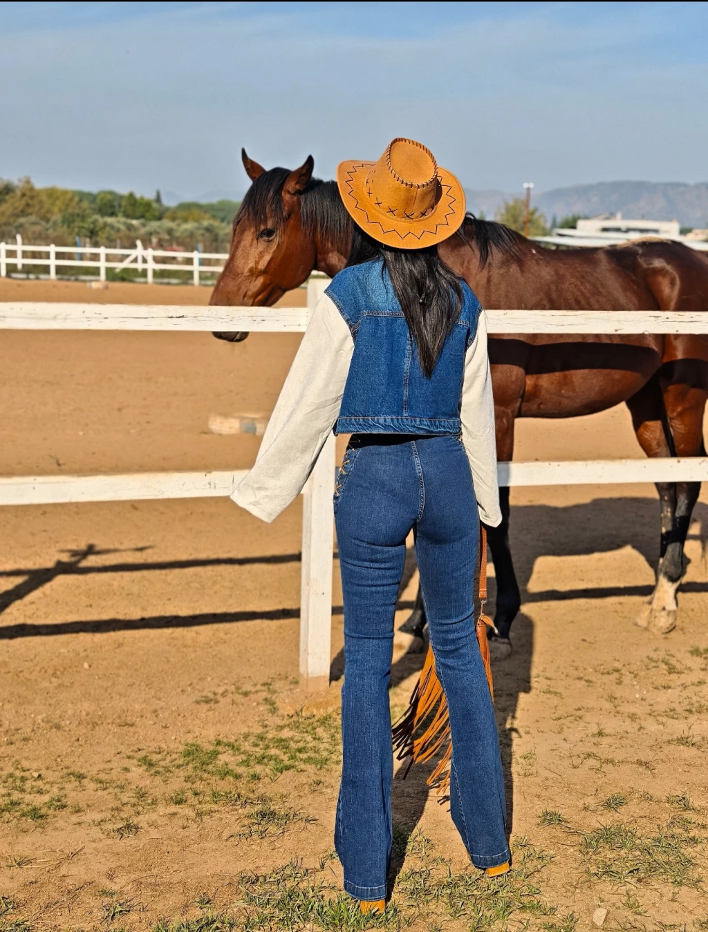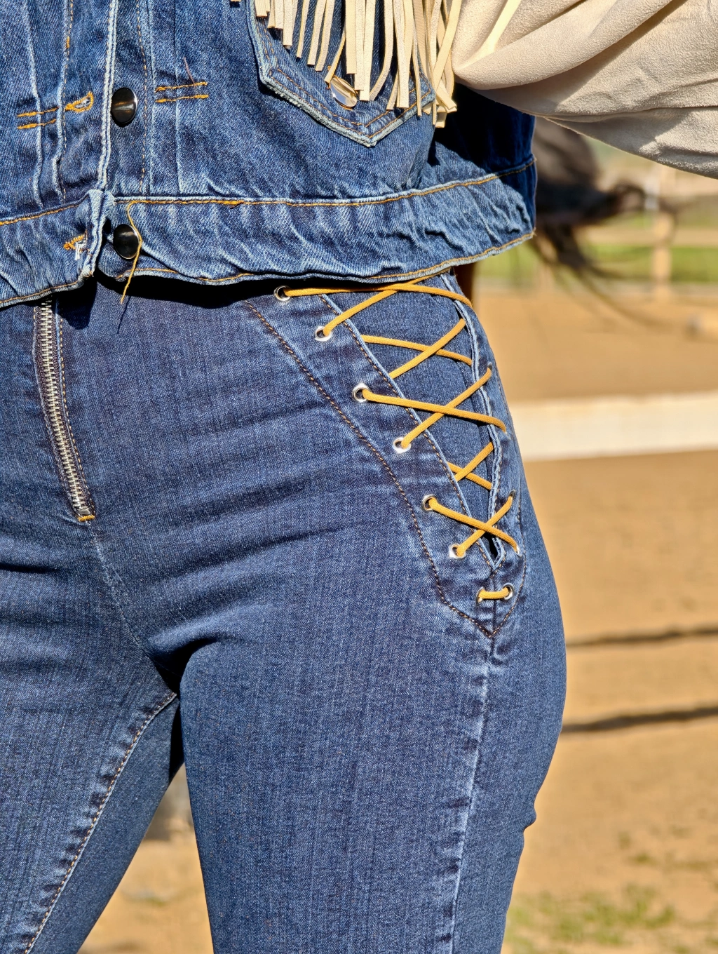 KUŞGÖZÜ BAĞLAMALI MAVİ PANTOLON
