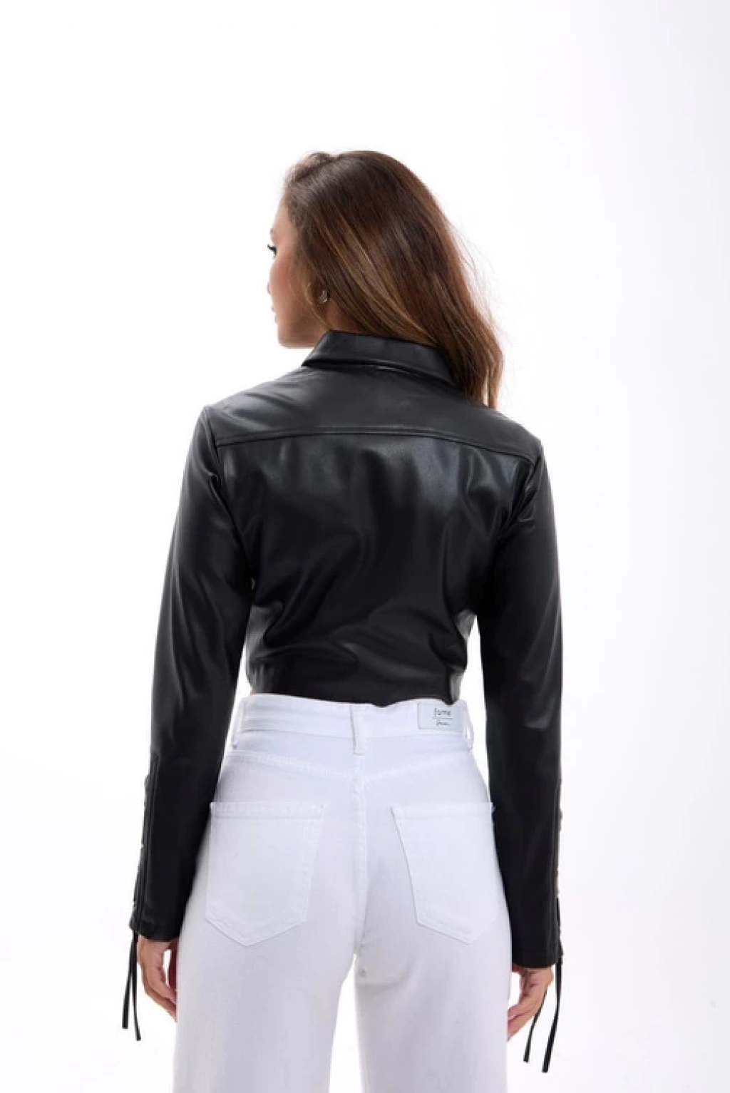 KUŞGÖZÜ DETAYLI DERİ CEKET
