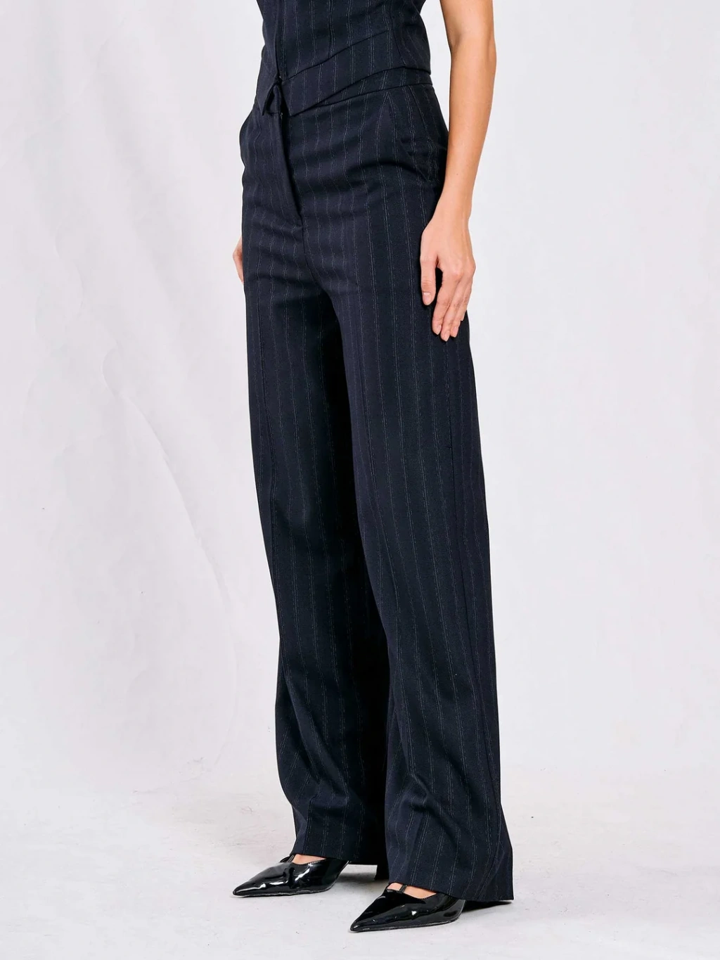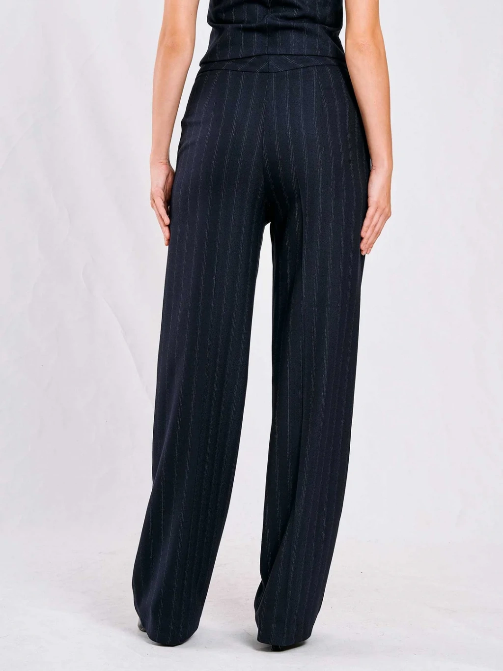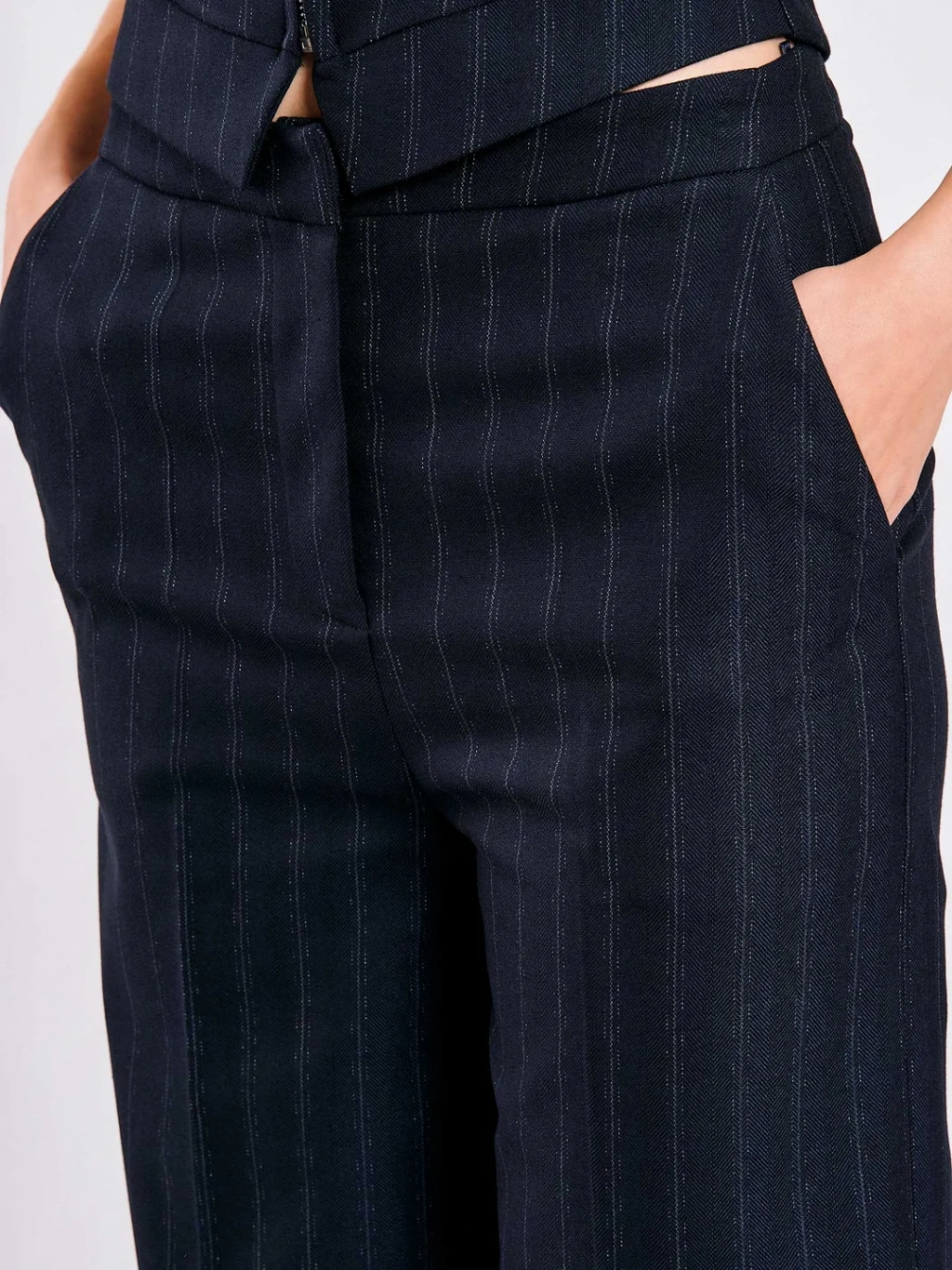 LACİVERT ÇİZGİLİ YANDAN CEPLİ PANTOLON