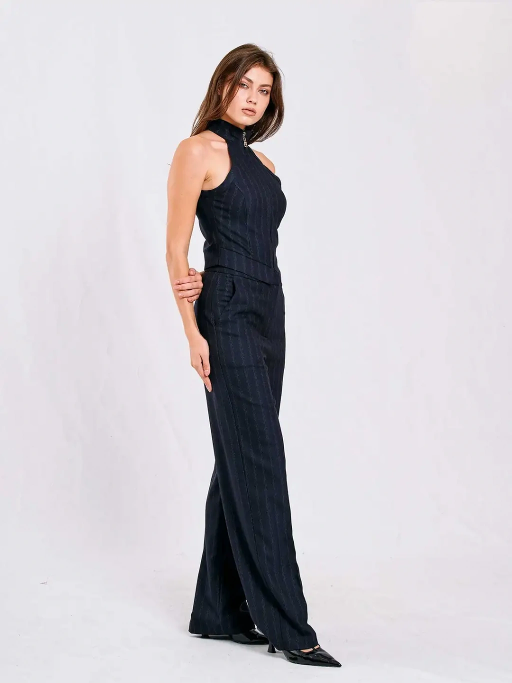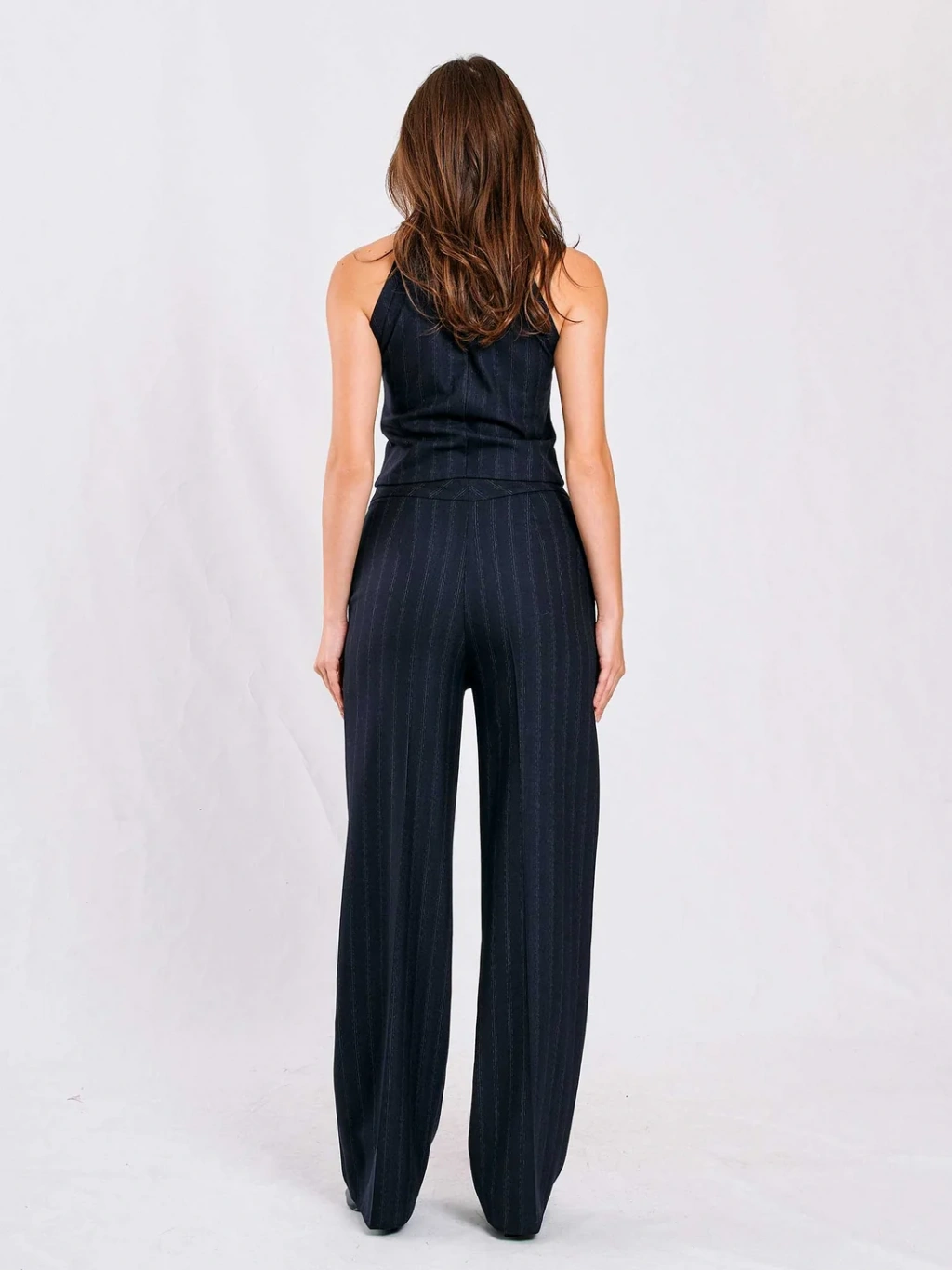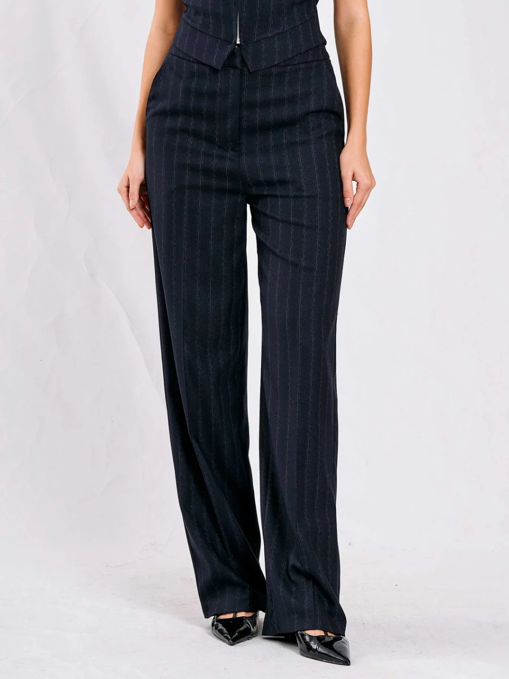LACİVERT ÇİZGİLİ YANDAN CEPLİ PANTOLON