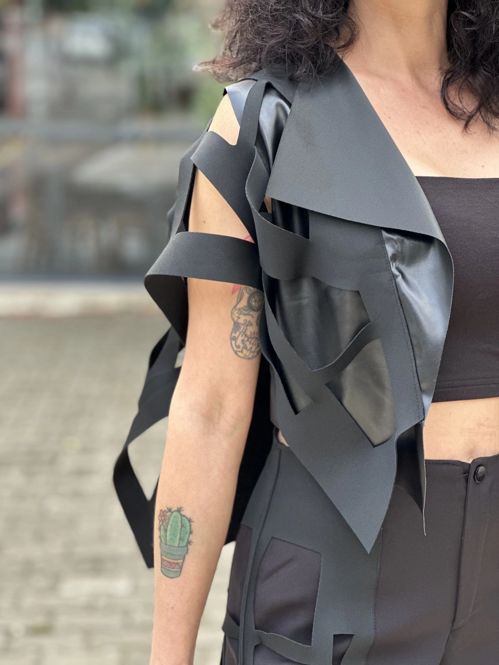 PÜSKÜLLÜ KANAVİÇE DESEN CEKET