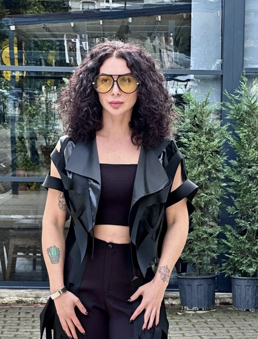 KUŞGÖZÜ DETAYLI DERİ CEKET