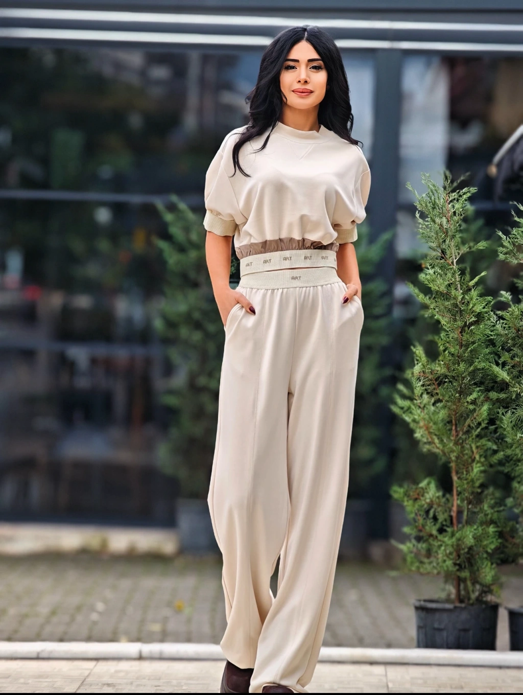 İŞLEME DETAYLI CROP PANTOLON TAKIM