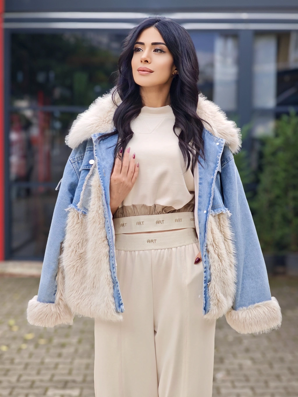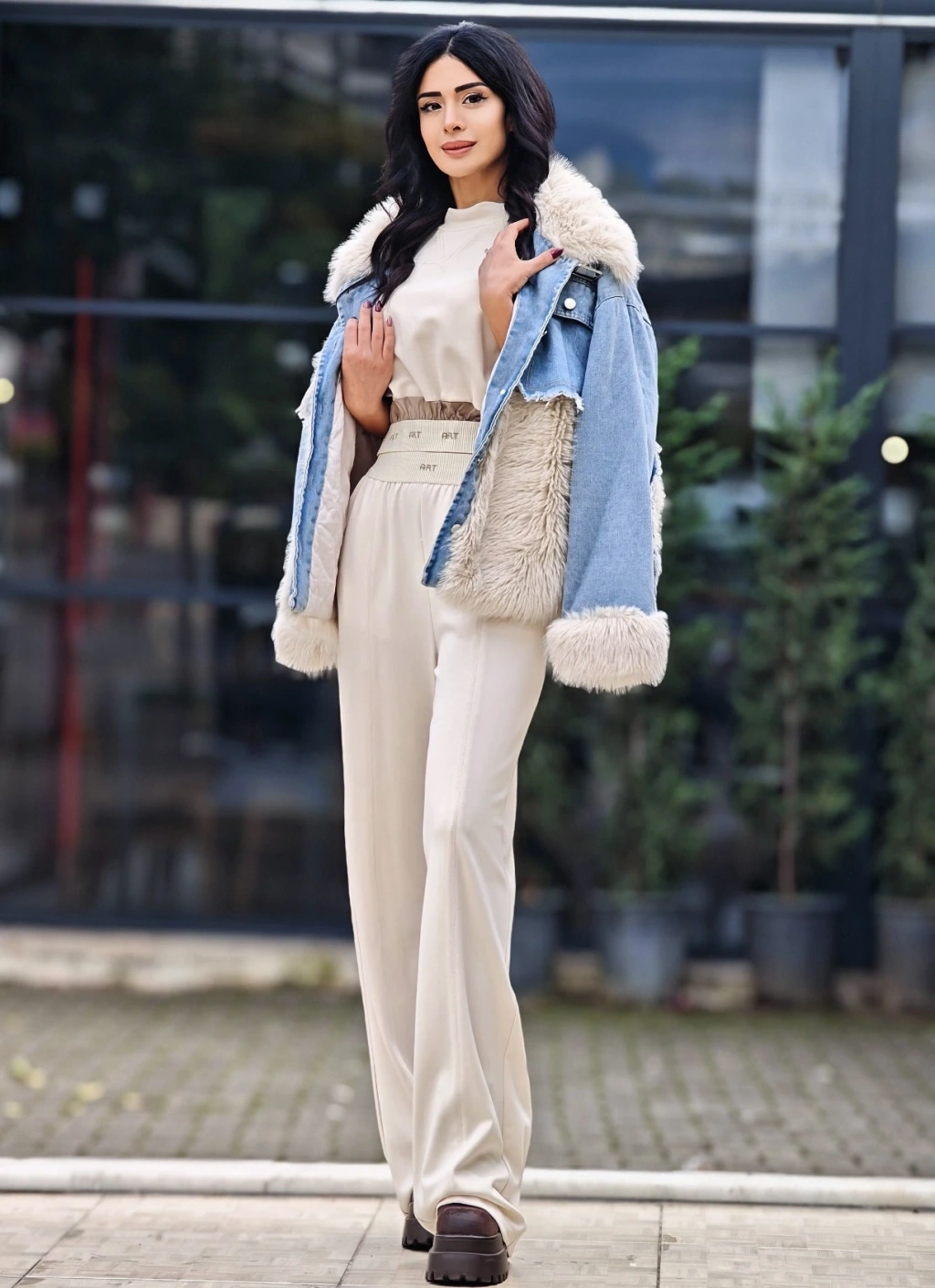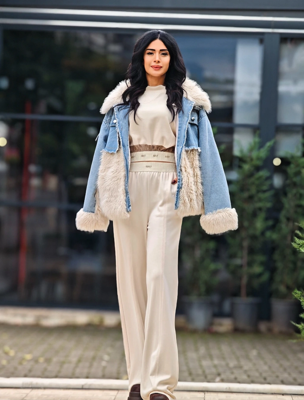 TABA SÜET DETAYLI YELEKLİ TASARIM TAKIM
