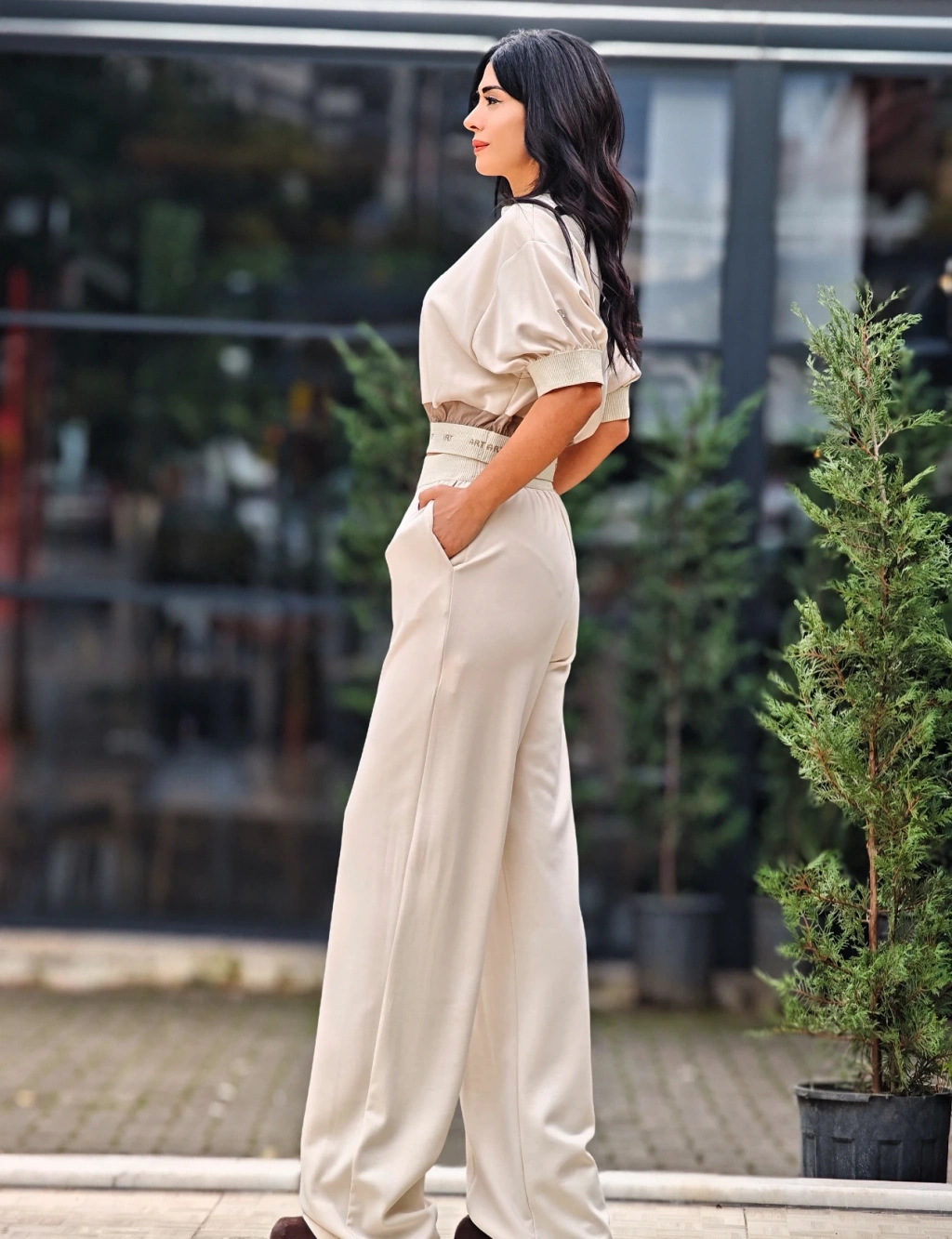 NATURAL KETEN BLUZ PANTOLON TAKIM