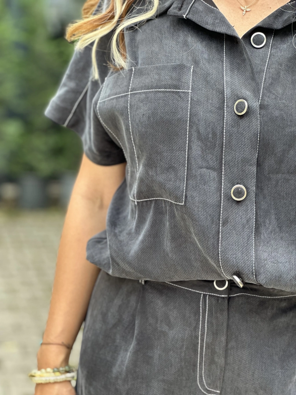 YAKA DETAYLI TÜL ANTRASİT ELBİSE