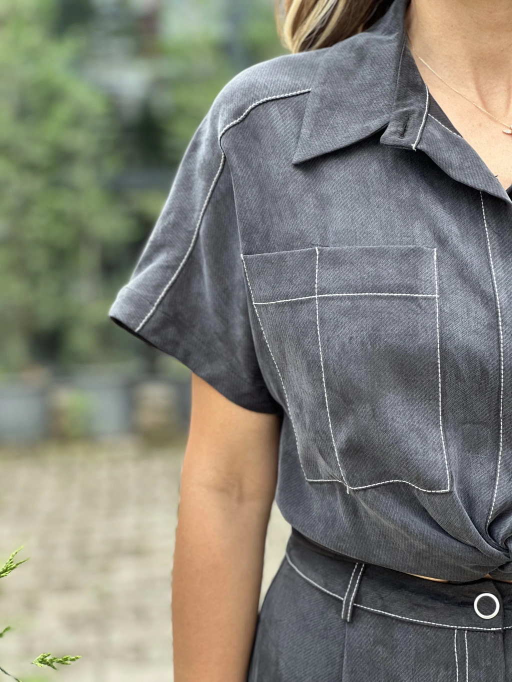 JEAN DETAYLI TASARIM BLUZ SİYAH